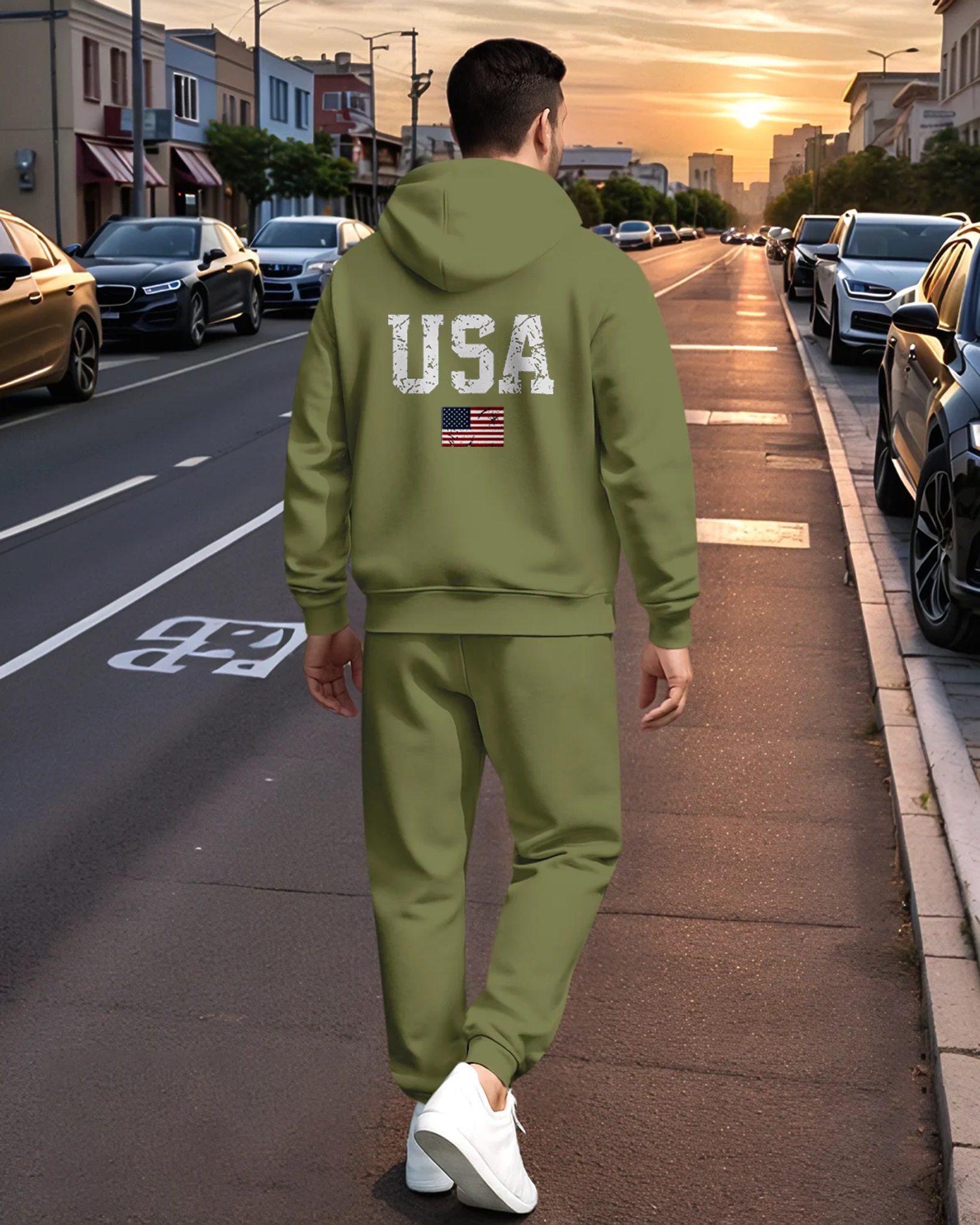 Men's Printed Hoodie And Drawstring Sweatpants Set 012