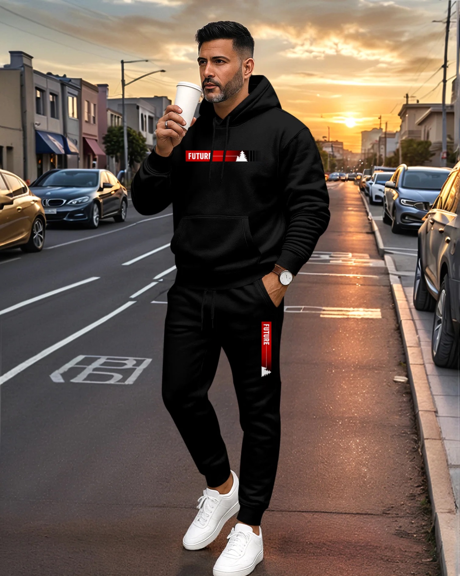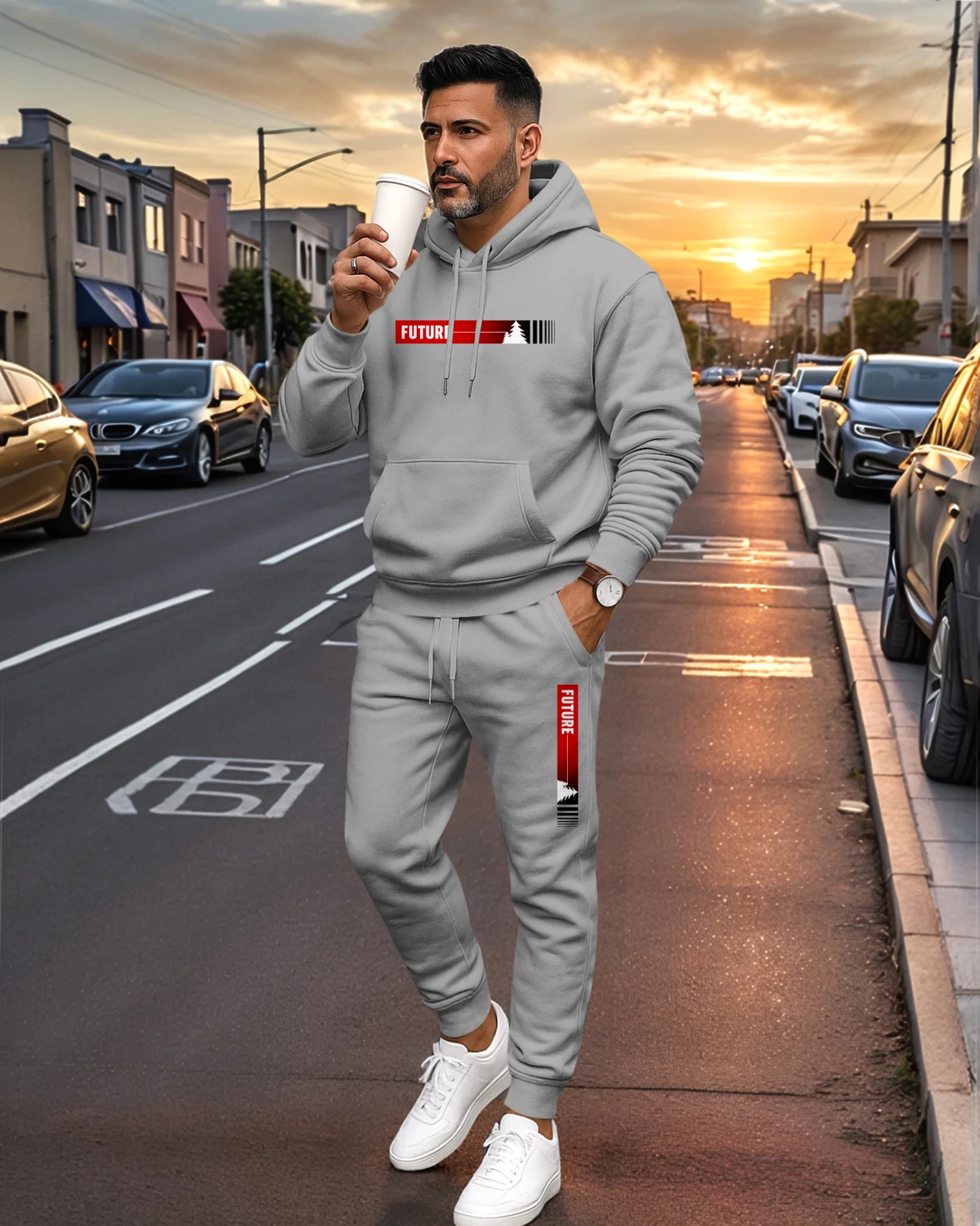 Men's Printed Hoodie And Drawstring Sweatpants Set 016