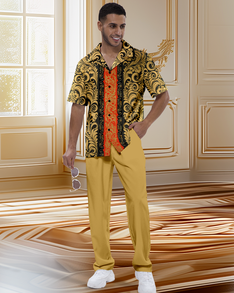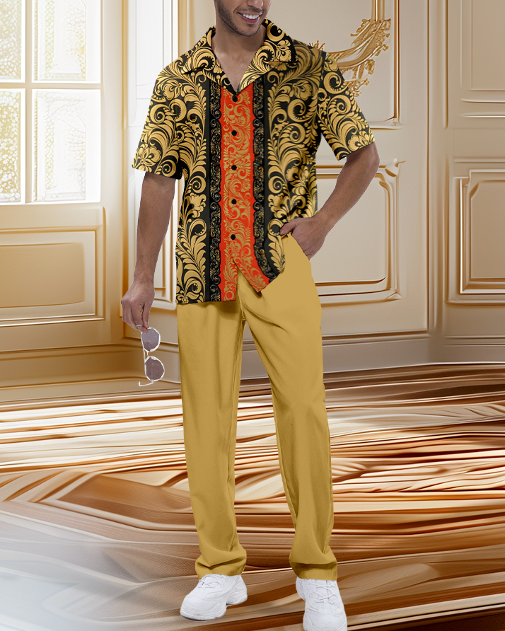 Men's Retro Luxury Short Sleeve Shirt Walking Suit 1119