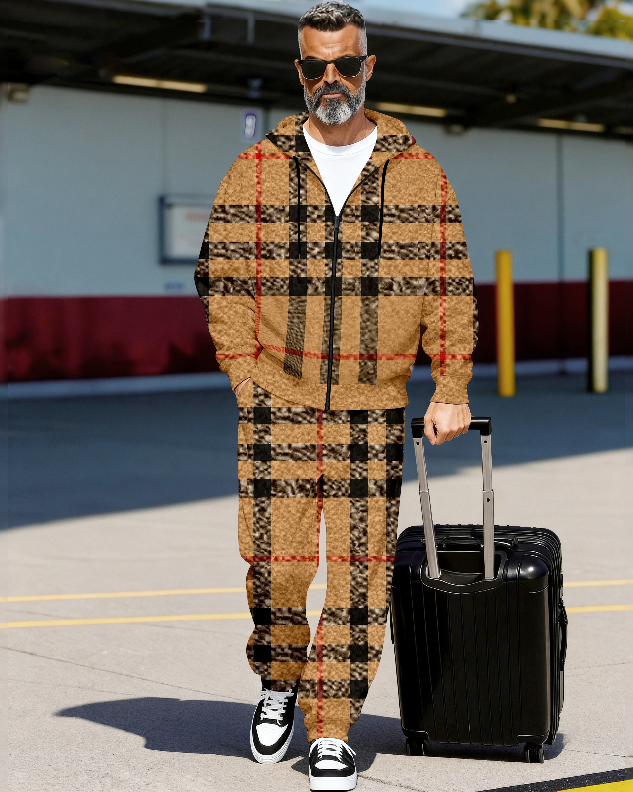 Men's Retro Luxury Thickened Fleece Colorblock Jacket Sports Hoodie Set 06