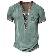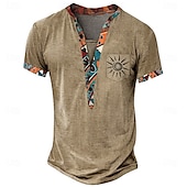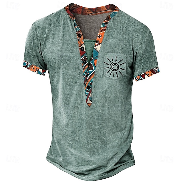 Fabric:Polyester,Tops Type:Tee,Henley Shirt,T Shirt,Gender:Men's,Design:Pocket,Print,Occasion:Outdoor,Sports,Casual,Daily,Style:Ethnic,Bohemian,Designer,Casual,Basic,Classic,Special Size:Plus Size,Neckline:Henley,Details:Pocket,Sleeve Length:Short Sleeve,Thickness:Medium,Standard,Elasticity:Micro-elastic,Look After Me:Machine wash,Washable,Pattern:Tribal,Ethnic,Season:Summer,