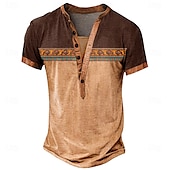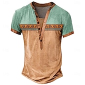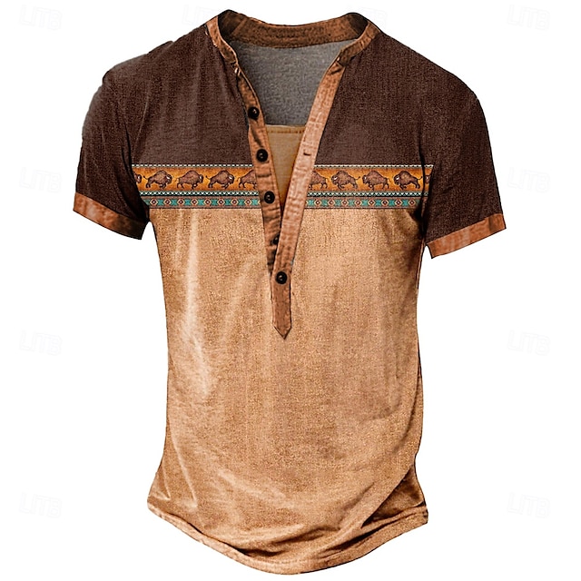 Fabric:Polyester,Tops Type:Tee,Henley Shirt,T Shirt,Gender:Men's,Design:Button-Down,Print,Occasion:Daily,Casual,Sports,Outdoor,Style:Classic,Basic,Casual,Designer,Ethnic,Big and Tall,Special Size:Plus Size,Neckline:Henley,Sleeve Length:Short Sleeve,Thickness:Medium,Elasticity:Micro-elastic,Look After Me:Machine wash,Washable,Pattern:Tribal,Ethnic,Season:Summer,