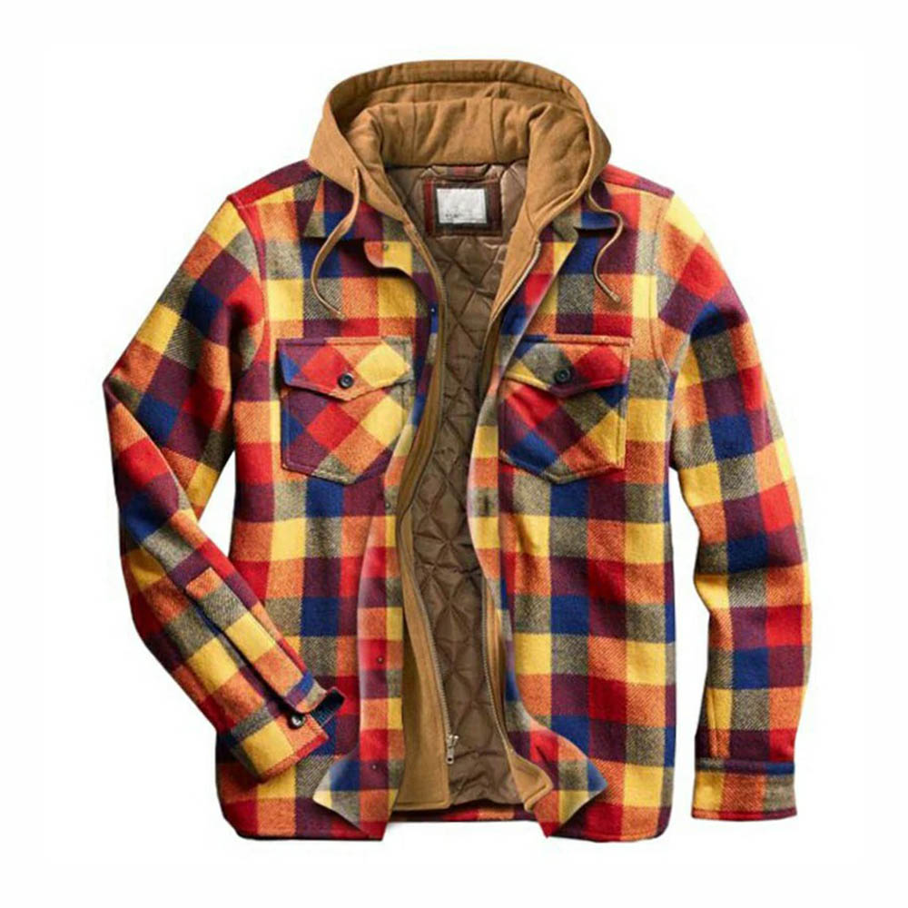 Quilted Thick Checked Long-Sleeved Loose Jacket Men‘S Hoodie