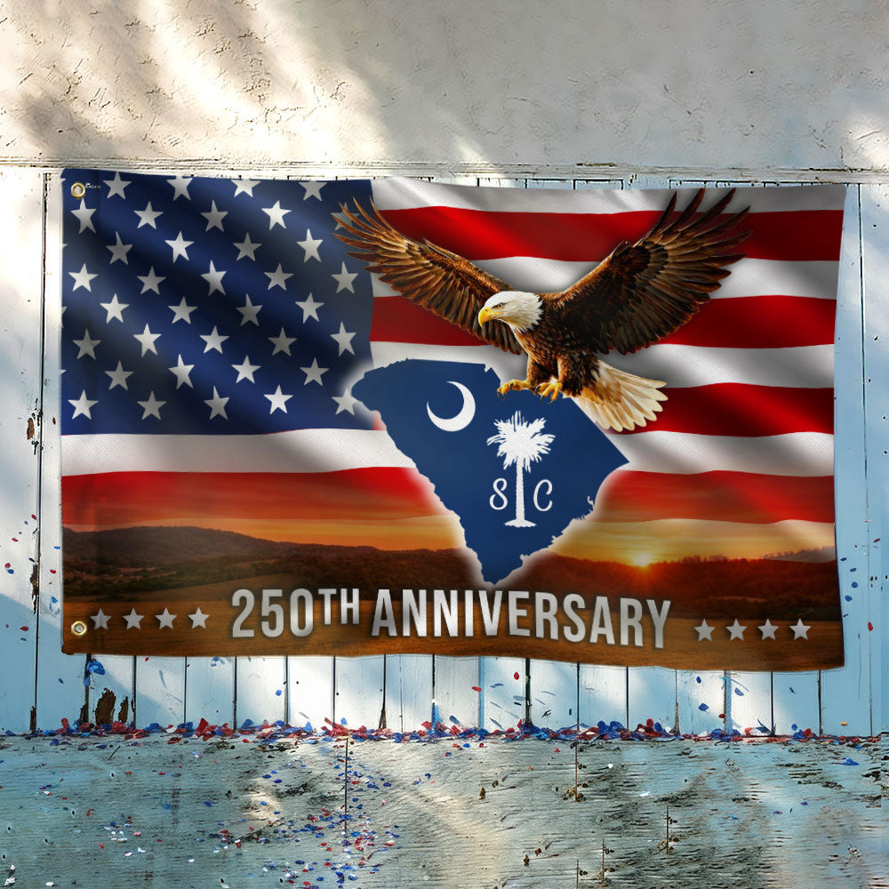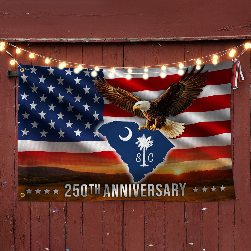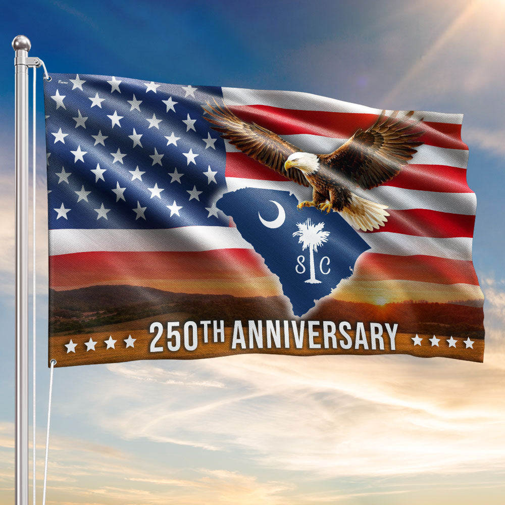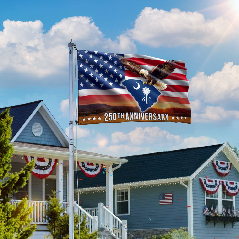 SC 250th Anniversary Flag, South Carolina USA Patriotic Eagle Grommet Flag