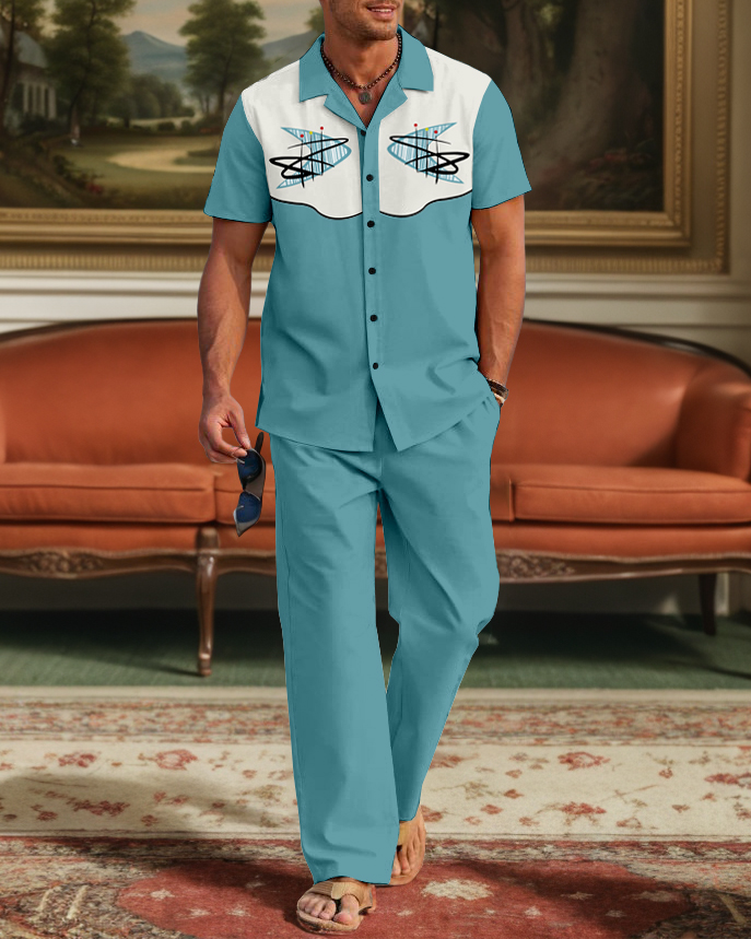 Suitmens Men's 50s Retro Geometric Pattern Walking Suit