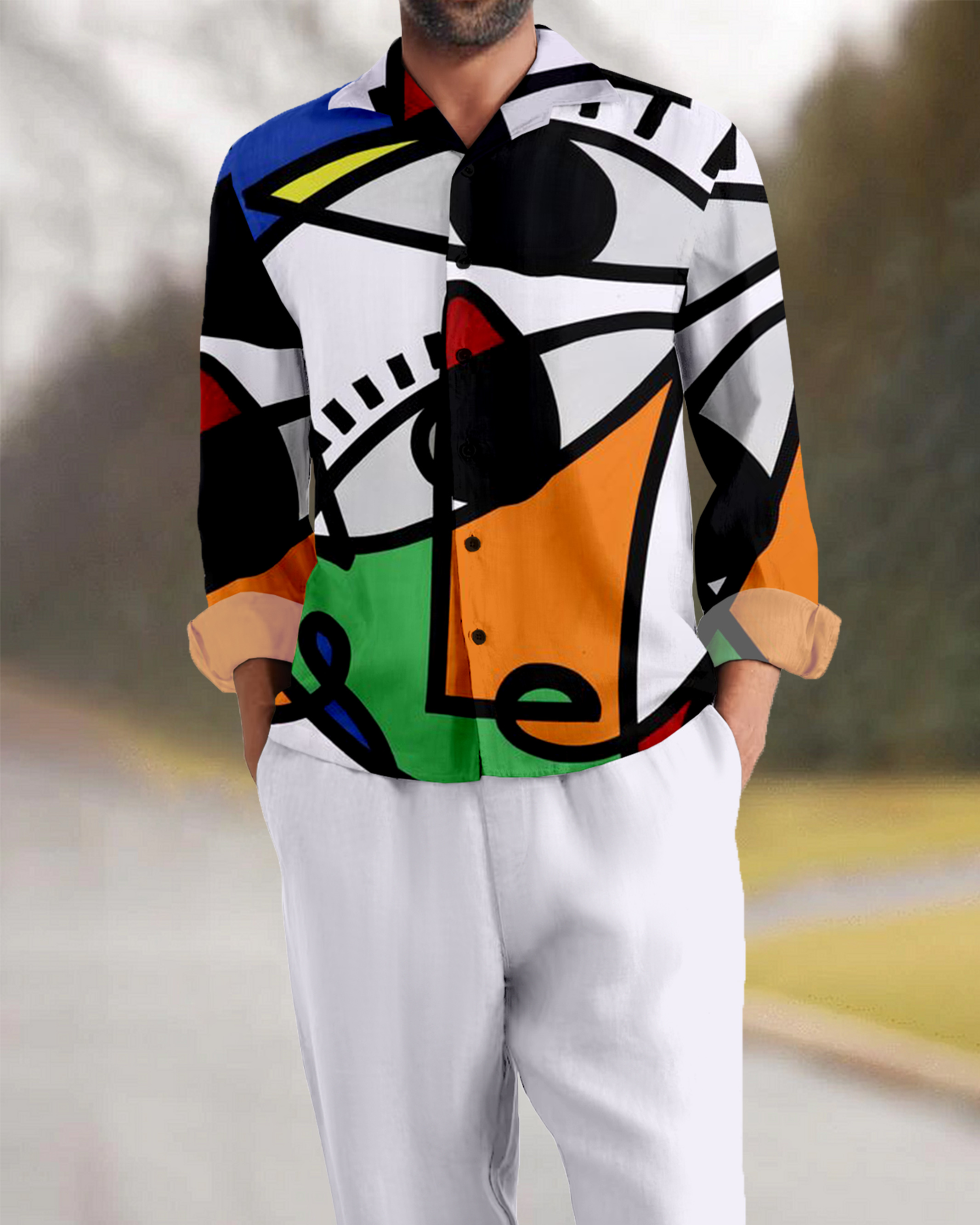 Suitmens Men's Abstract Art Long Sleeve Walking Suits-0052