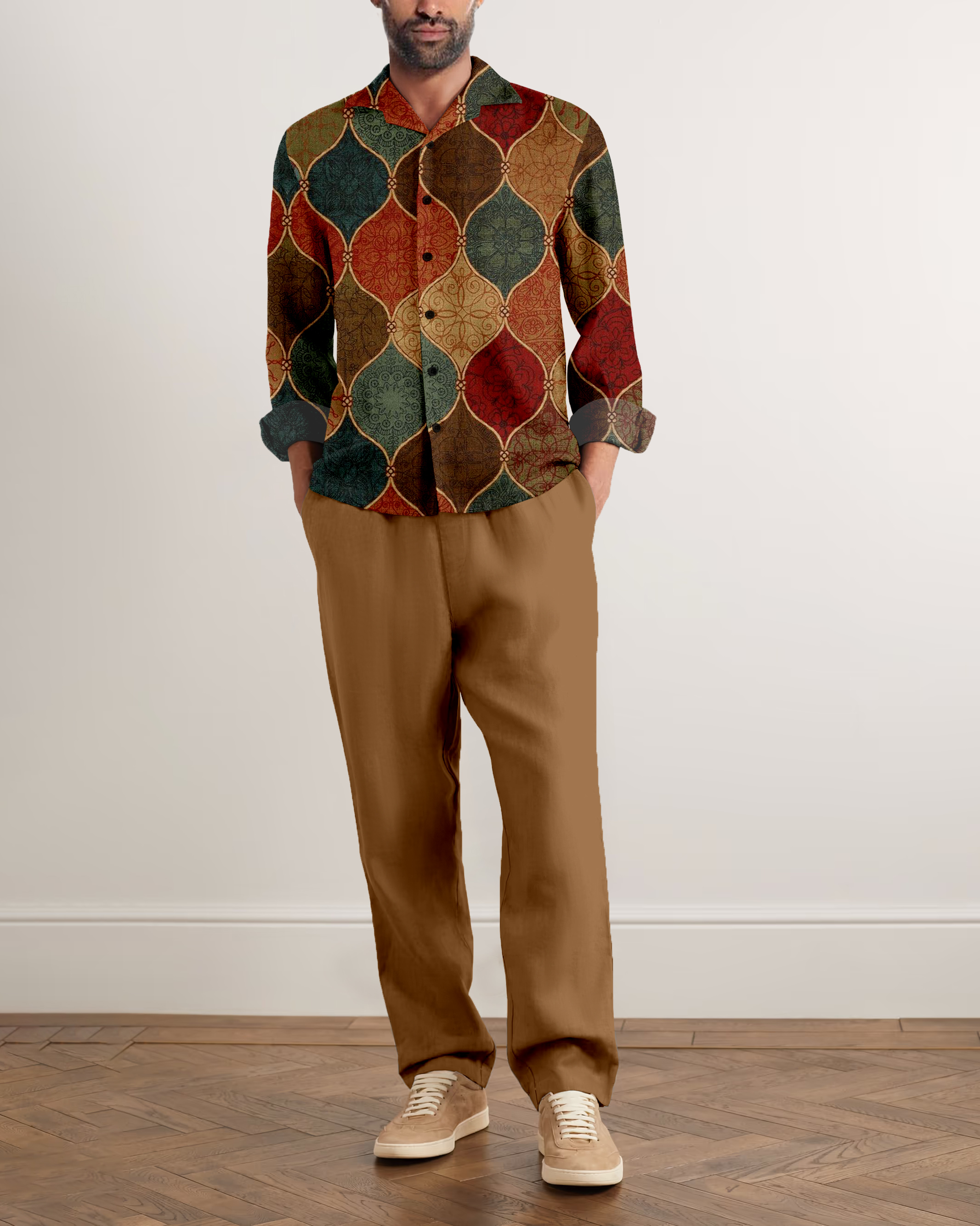 Suitmens Men's Classical Flower Long Sleeve Walking Suits-0055