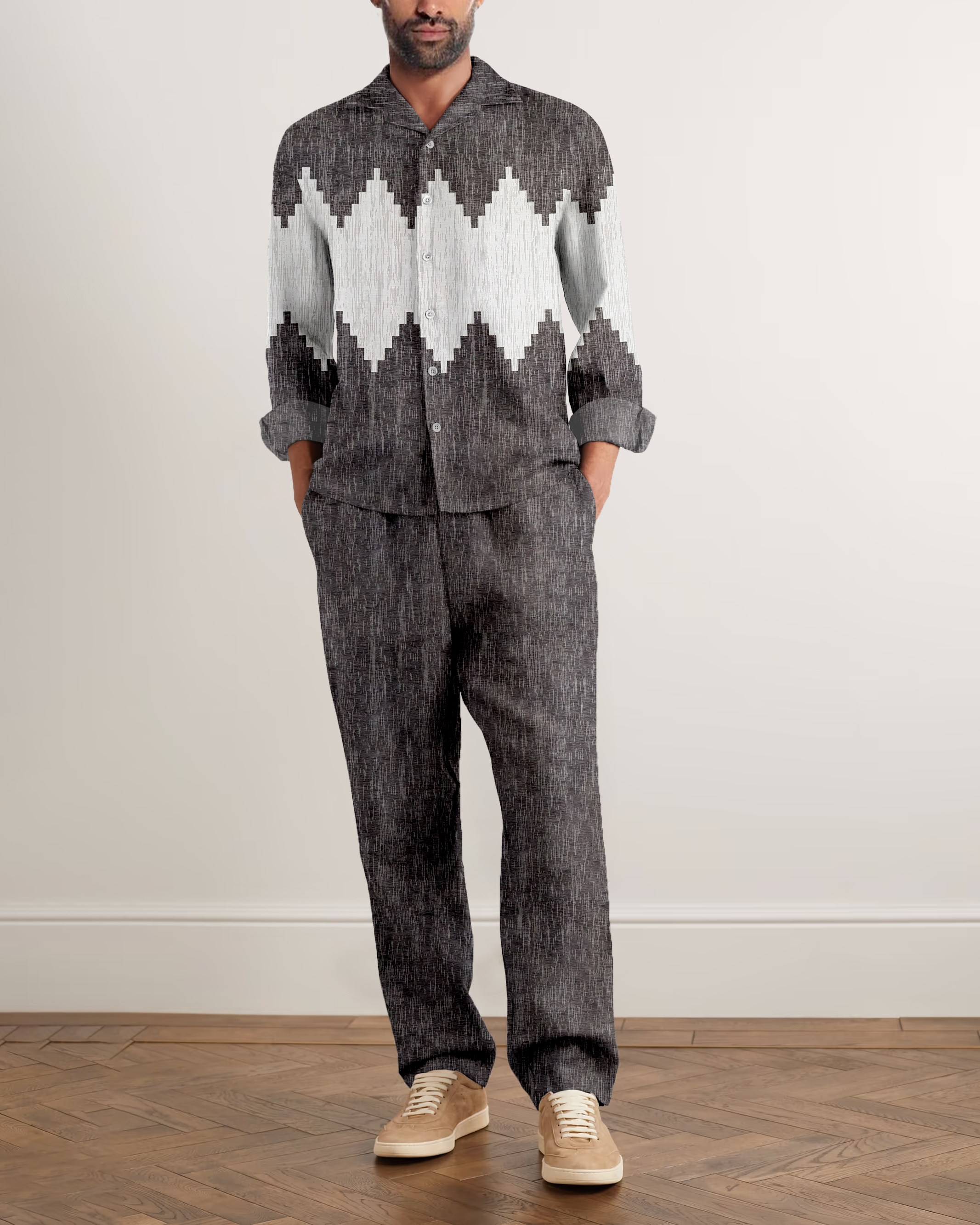 Suitmens Men's Geometry Long Sleeve Walking Suits-0041