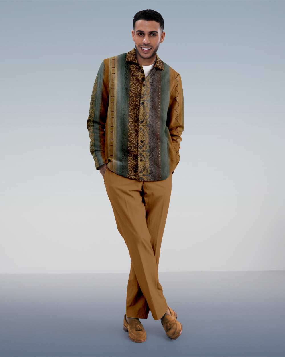 Suitmens Men's Gradient Racial Stripes Long Sleeve Walking Suits-0064