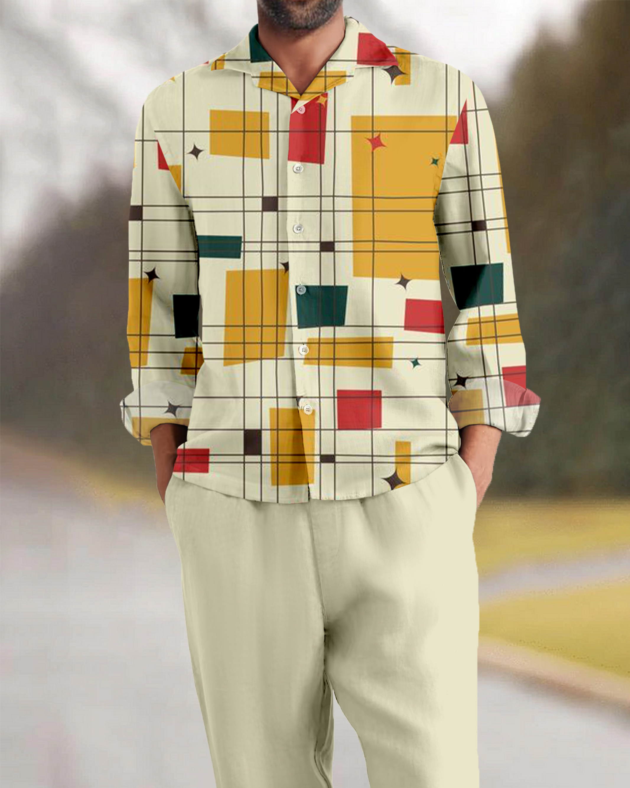 Suitmens Men's Installation Geometry Long Sleeve Walking Suits-0040