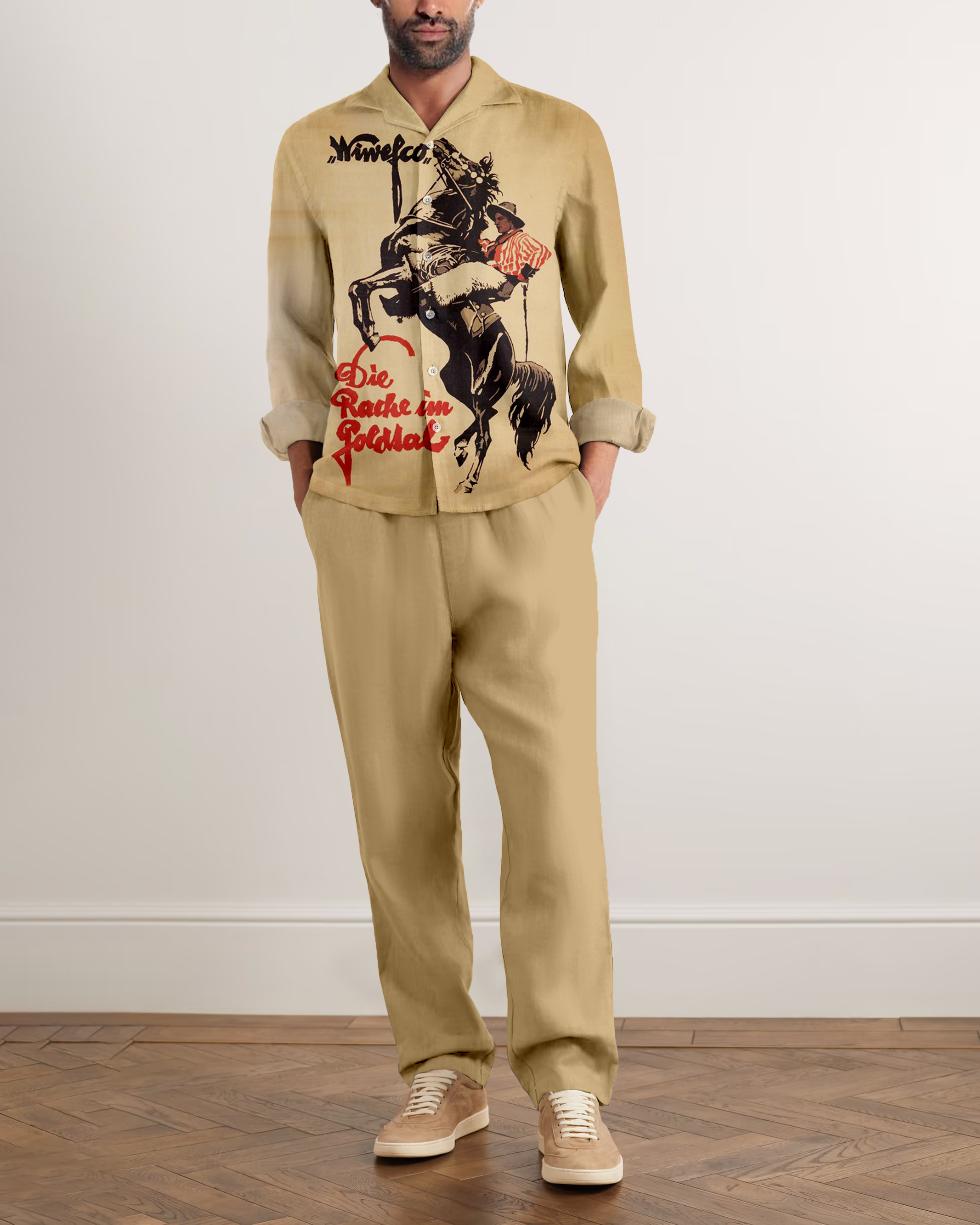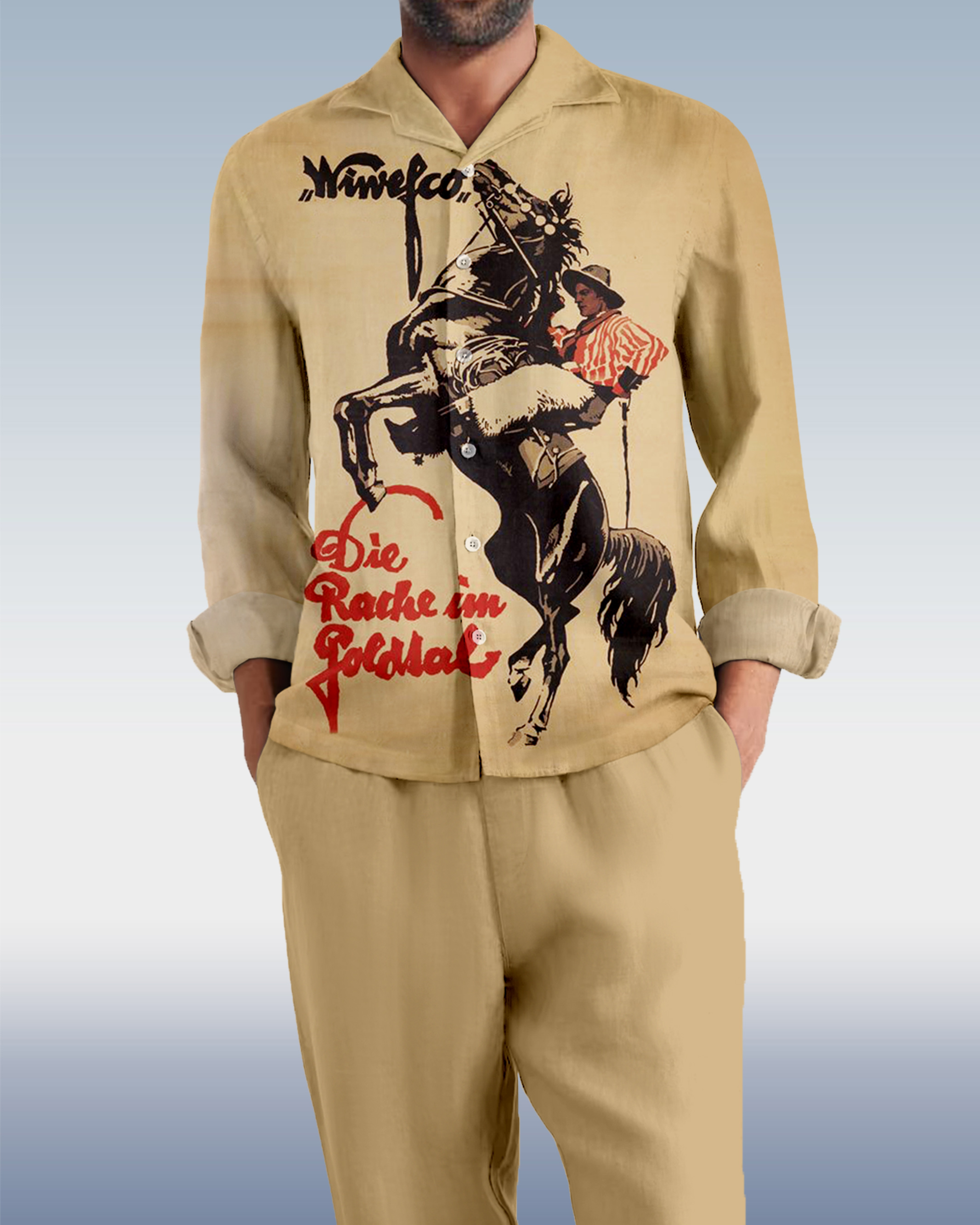 Suitmens Men's Nostalgic Equestrian Pattern Long Sleeve Suit-0011