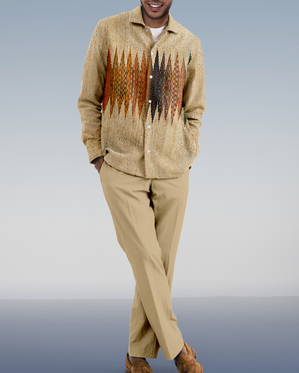Suitmens Men's Racial Geometry Long Sleeve Walking Suits-0067