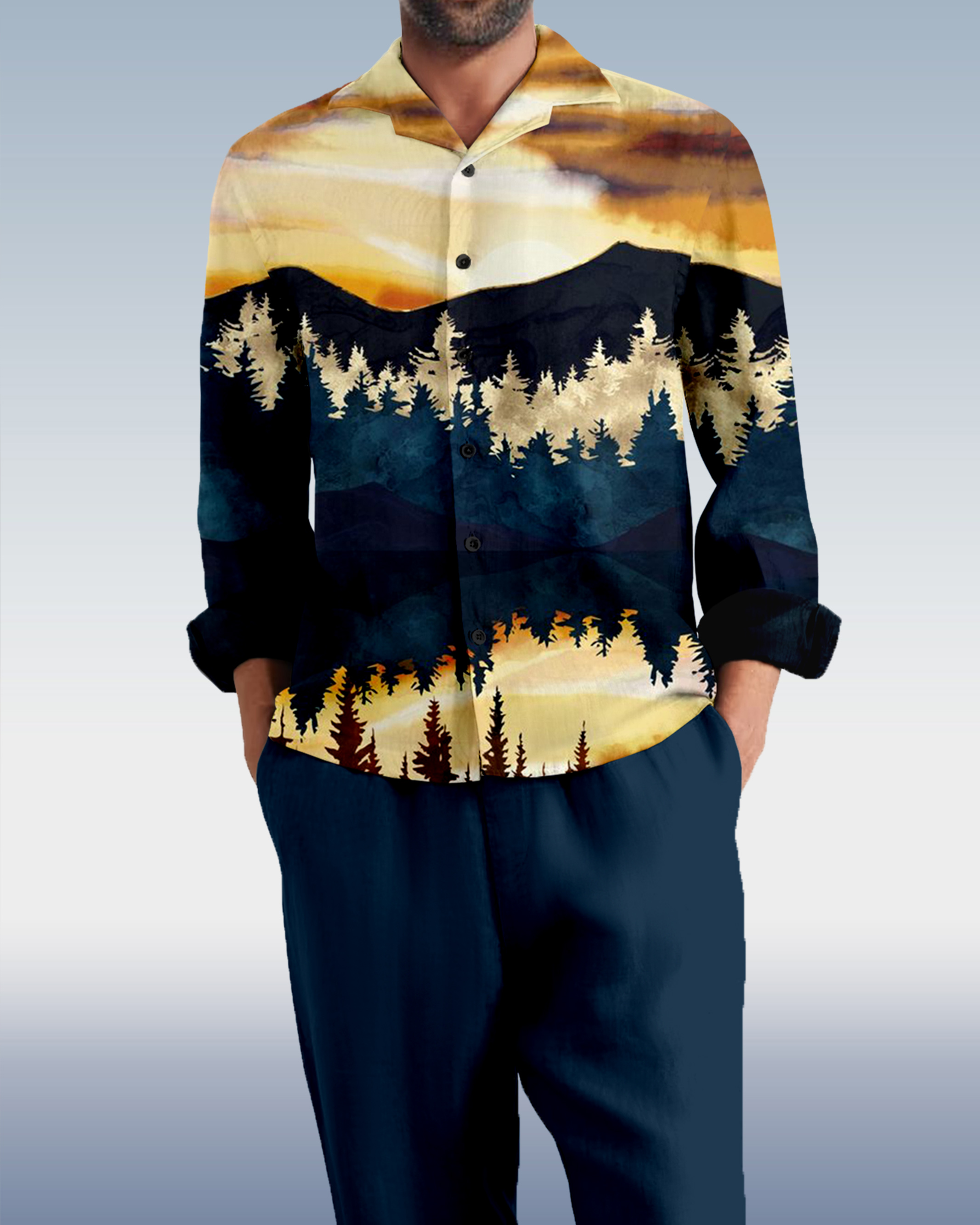 Suitmens Men's Retro Forest Mountain Long Sleeve Walking Suits-0121