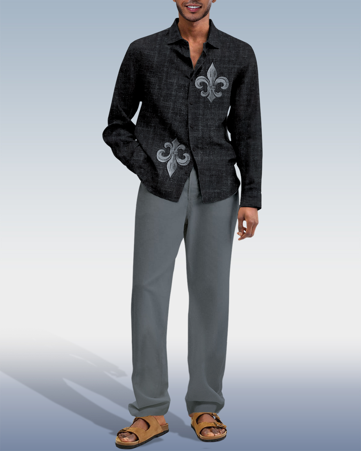 Suitmens Men's Retro Lilies Long Sleeve Walking Suits-0099