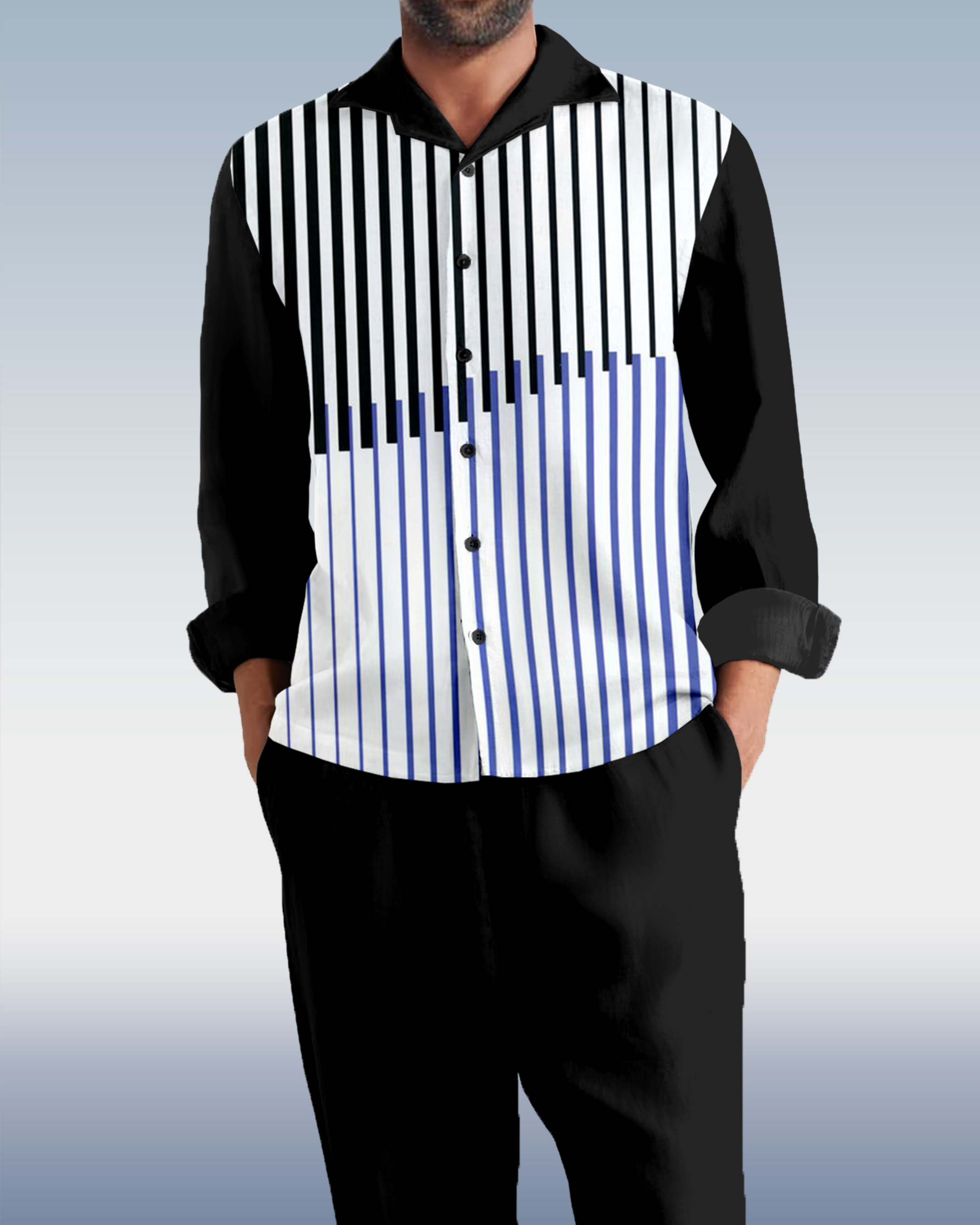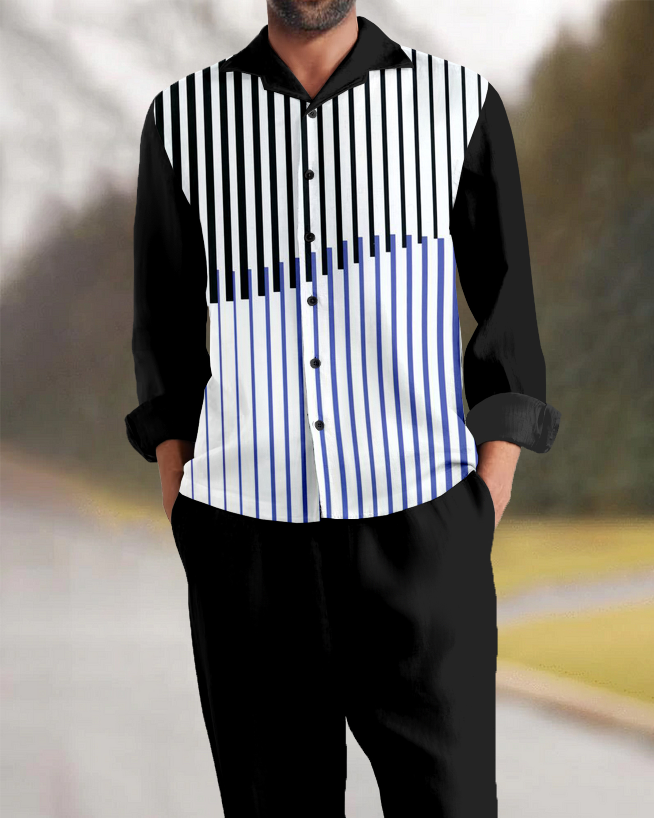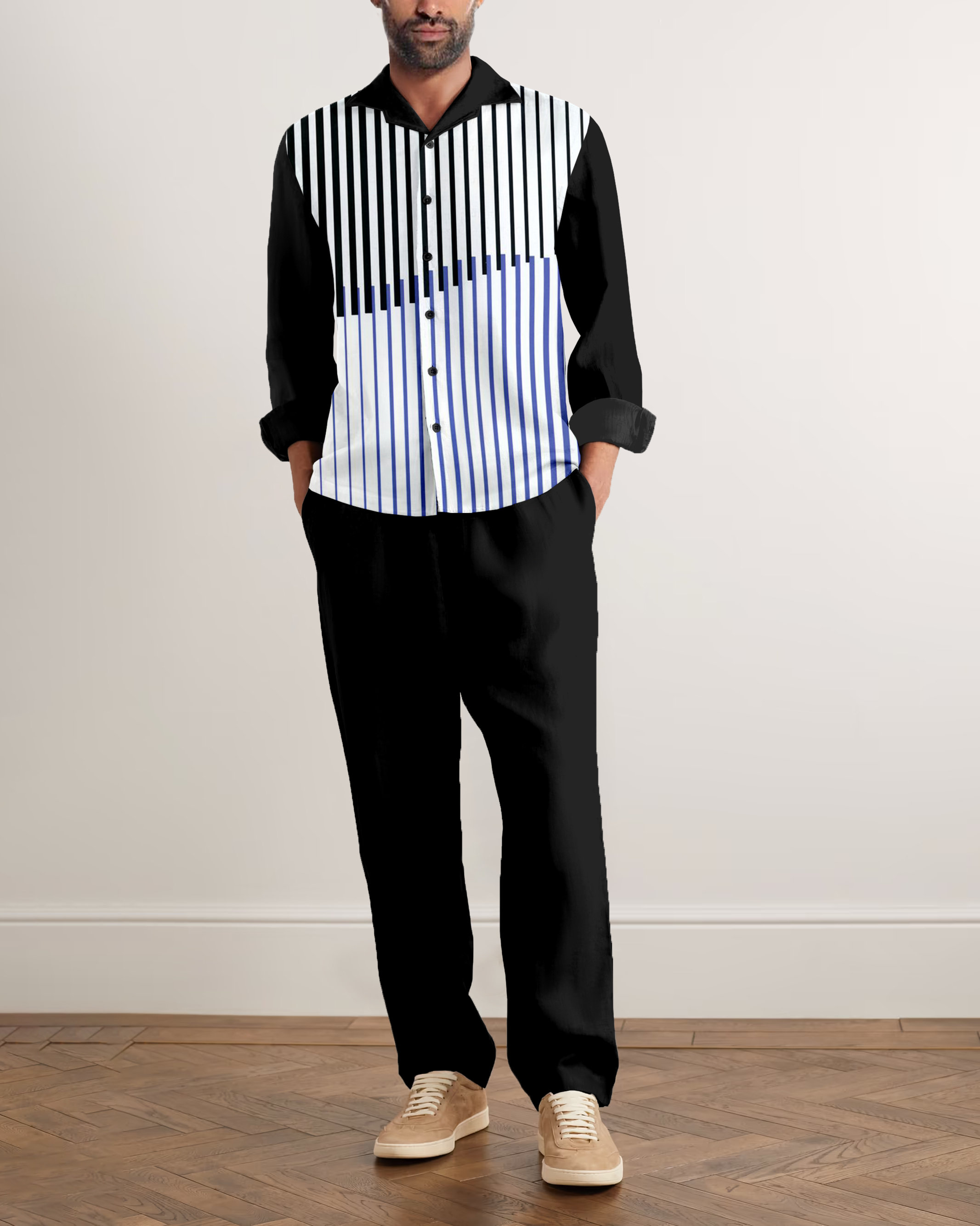 Suitmens Men's Stripe Geometry Long Sleeve Walking Suits-0139