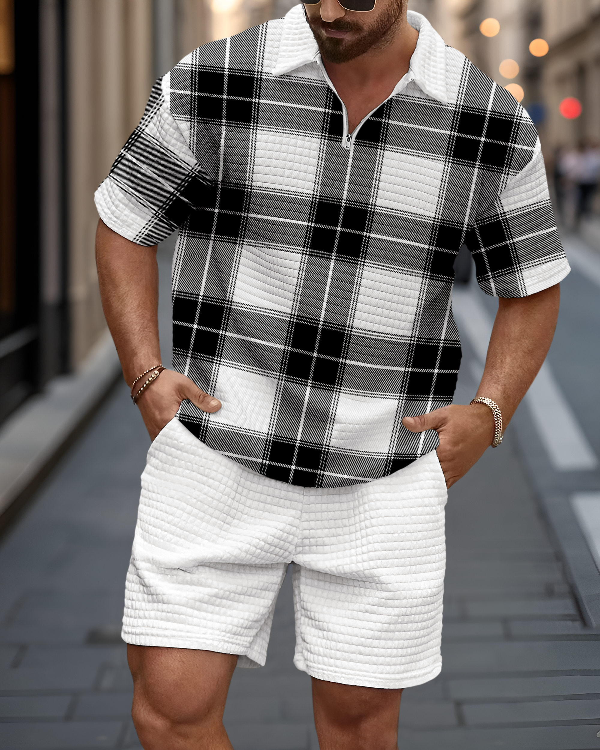 Men's Casual Art Print Waffle Texture Summer Polo Set 071