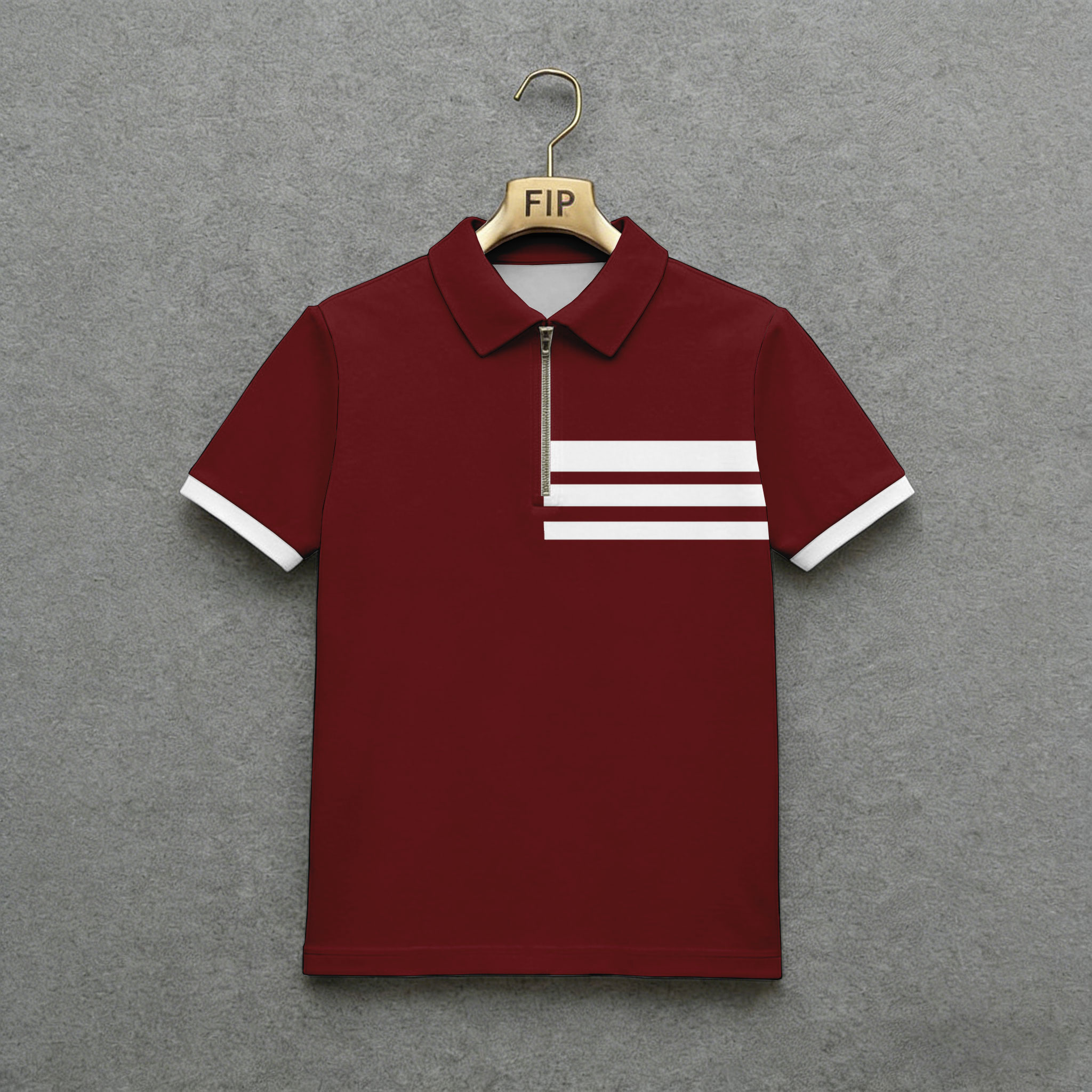 Men's Casual Maroon & White Color Matching Striped Print Short-Sleeve Polo Shirt