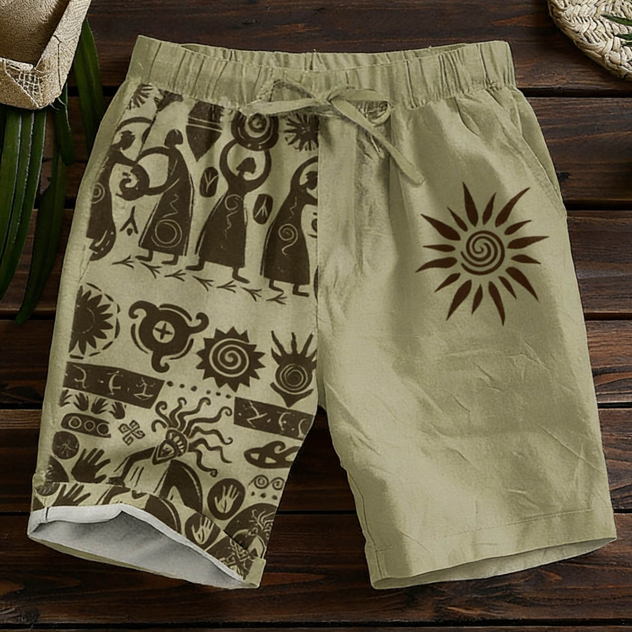 Men's Casual Green Ethnic Style Printed Shorts
