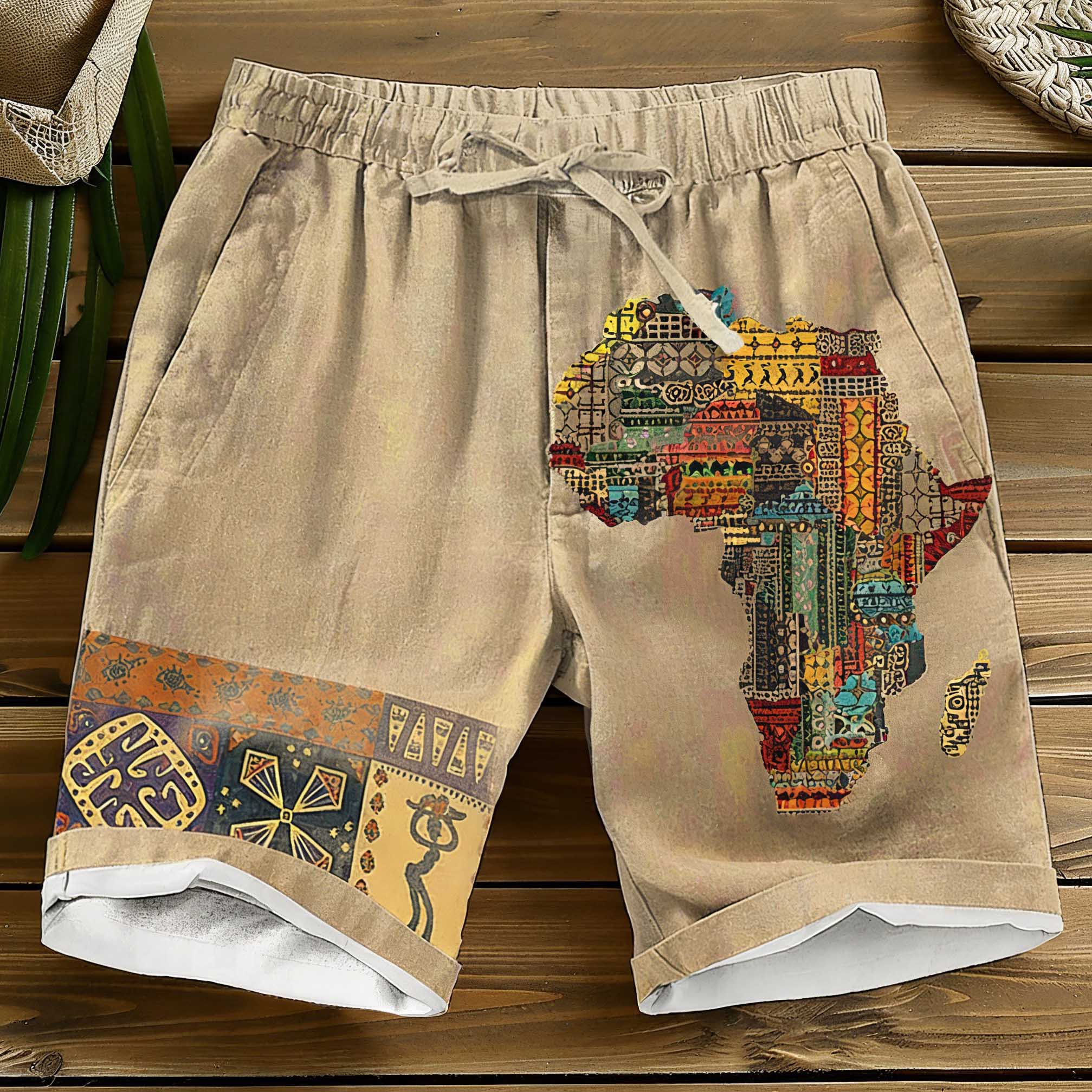 Men's Casual Light Brown Ethnic Style Printed Shorts