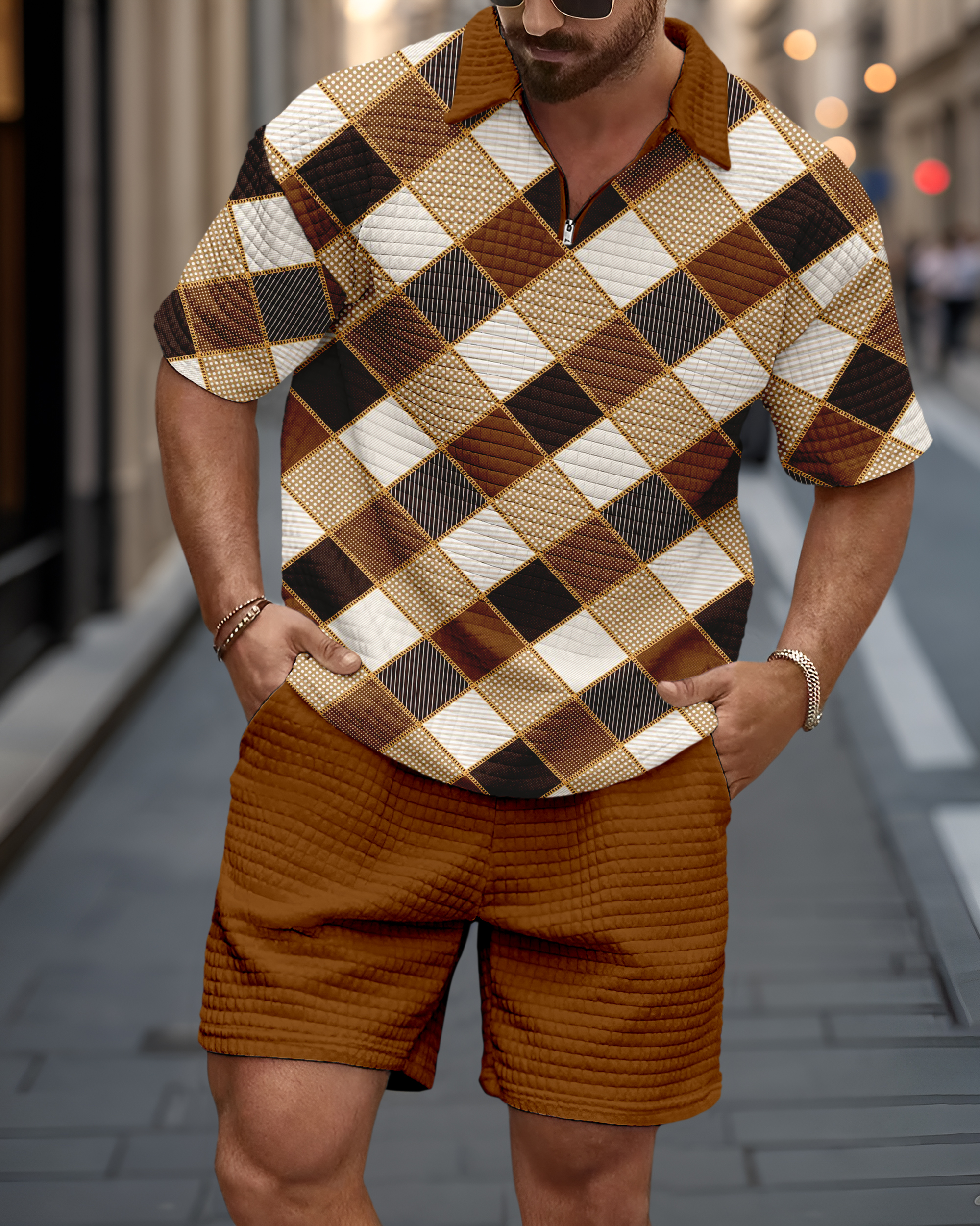 Men's casual waffle texture summer Polo Set 032