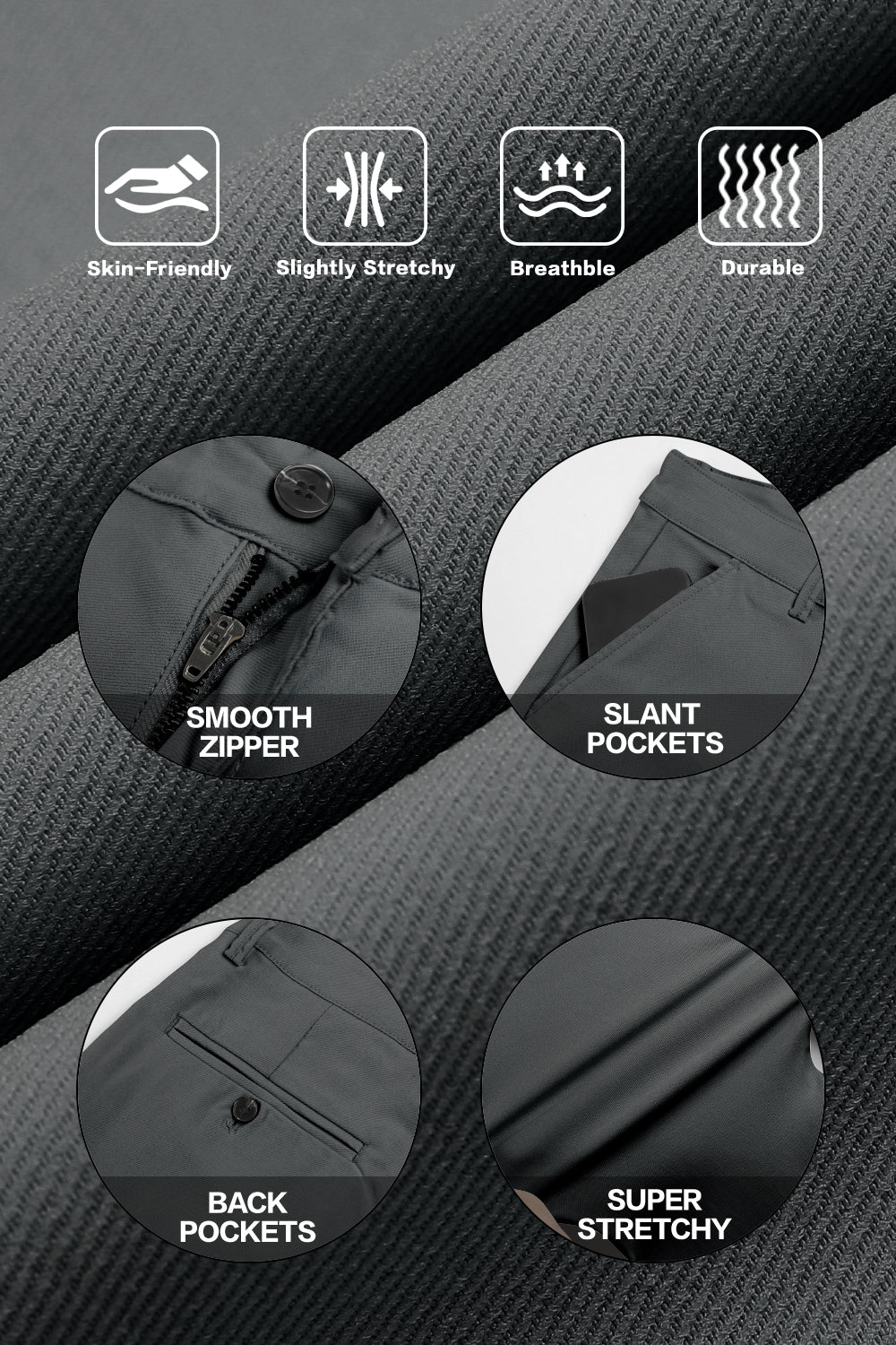 Mens Classic Fit Dress Pant - Dark Grey