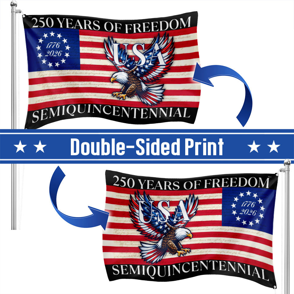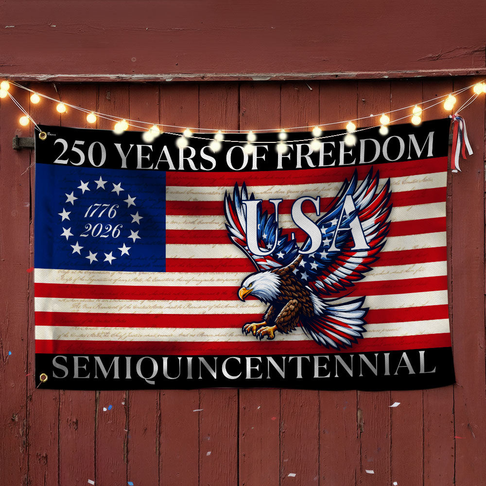 250 Years Of Freedom Flag | USA Bald Eagle Patriotic 250th Grommet Flag