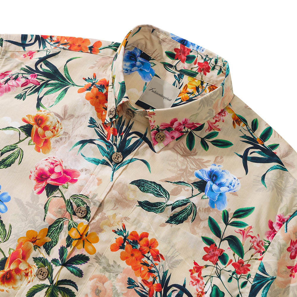 930S Floral Hawaiian Shirt Mens 100% Cottonshort Sleeve Button-Down Aloha Shirt Floral Radiance