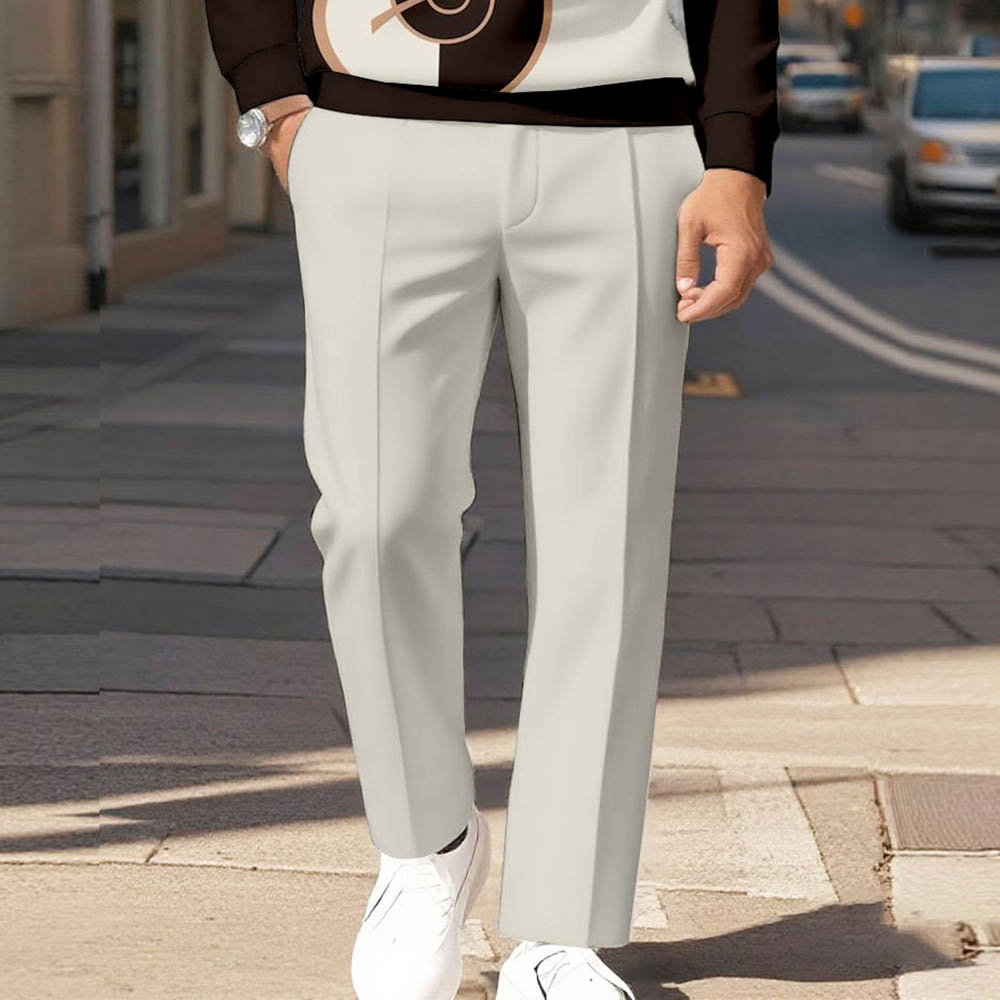 Men's Casual Color Matching Guitar Printed Polo-Collar Zipper Long Sleeved Trousers Two-Piece Set