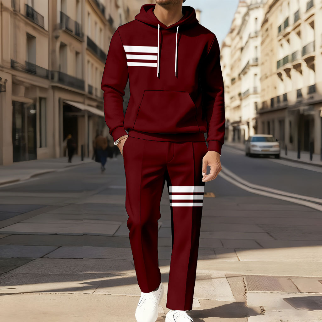 Men's Casual Color Matching Printed Long-Sleeved Hoodies Sweatshirt & Trousers Two-Piece Set