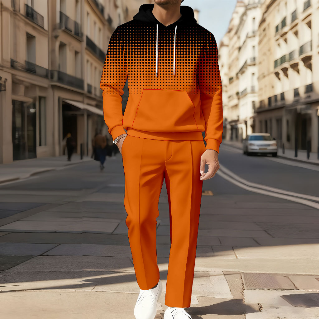 Men's Casual Color Matching Printed Long-Sleeved Hoodies Sweatshirt & Trousers Two-Piece Set