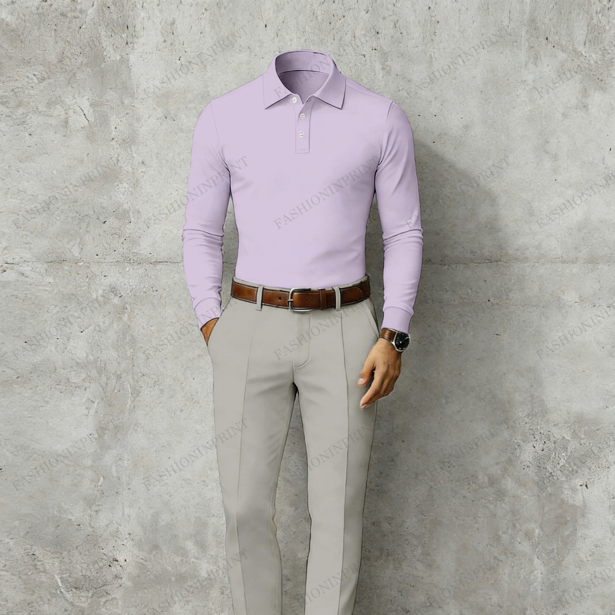 Men's Casual Purple & Light Gray Color Matching Long Sleeved Polo Shirt & Trousers Two-Piece Set