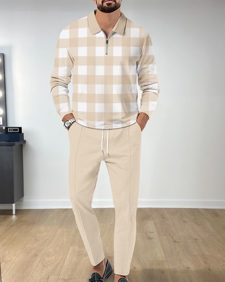 Men's Casual Colorblock Personalized Long Sleeve Polo Shirt Set 133