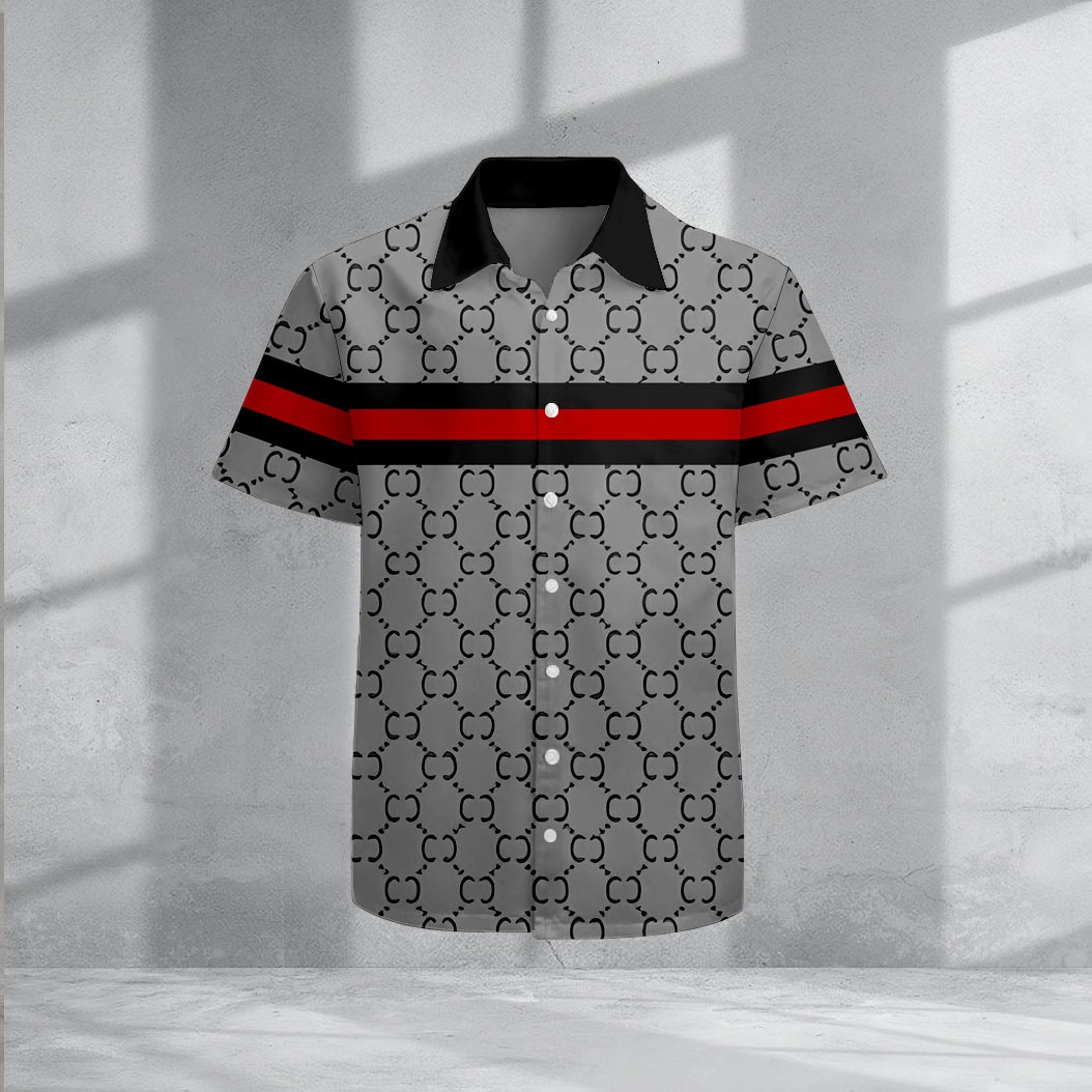 Men's Casual Gray Color Matching Vintage Pattenr Short-Sleeve Shirts