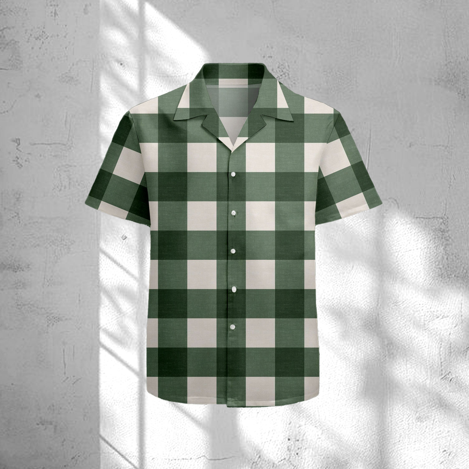 Men's Casual Green & Beige Color Matching Checkered Print Short-Sleeve Shirt