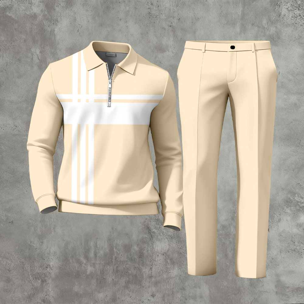 Men's Casual Apricot-Yellow Geometric Printed Long-Sleeve And Pants Two-Piece Set
