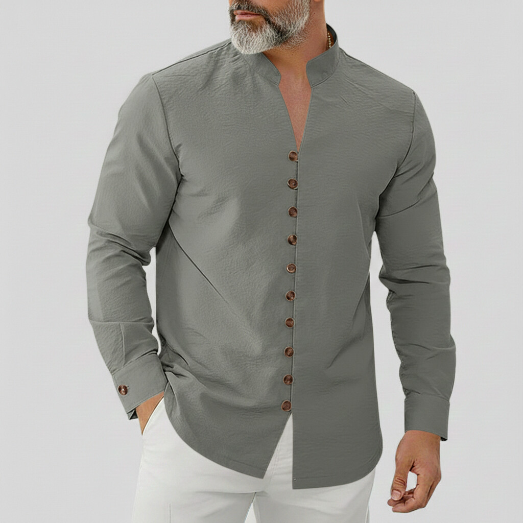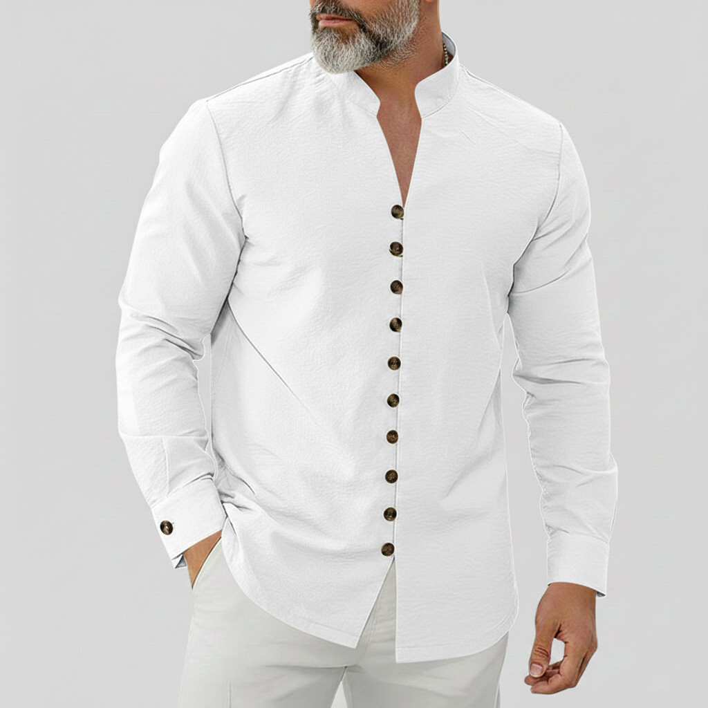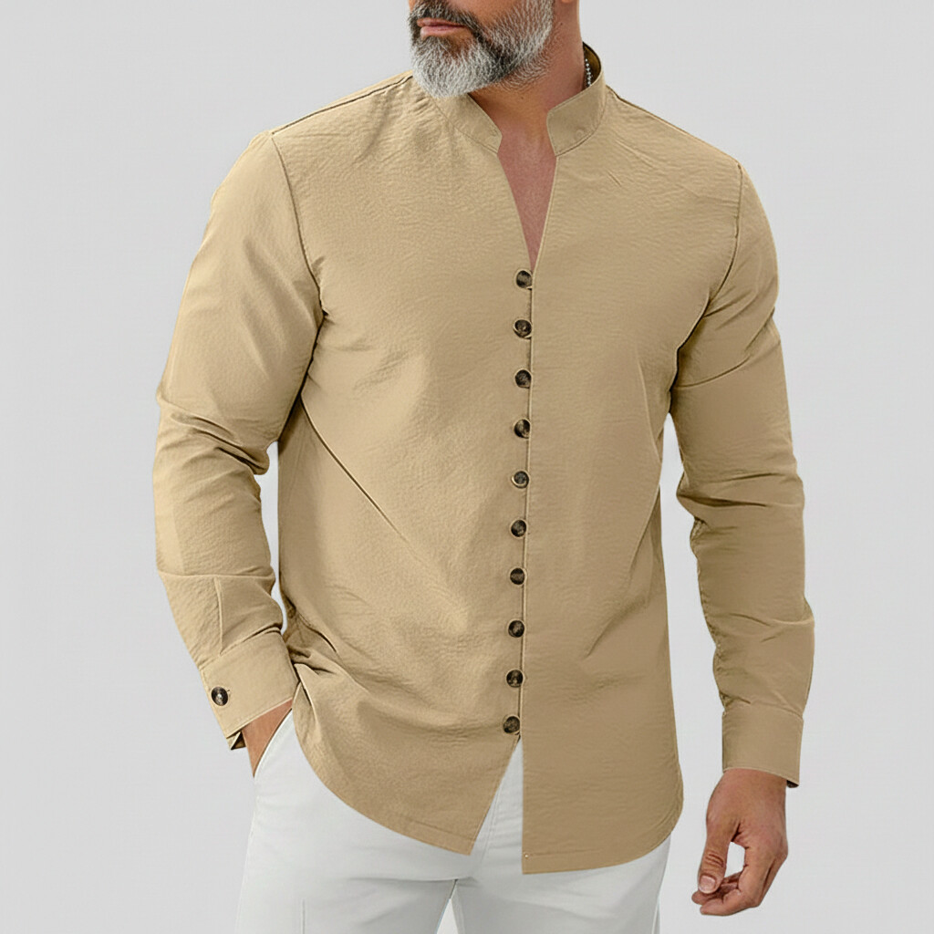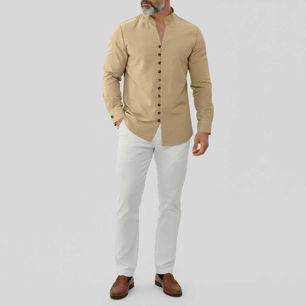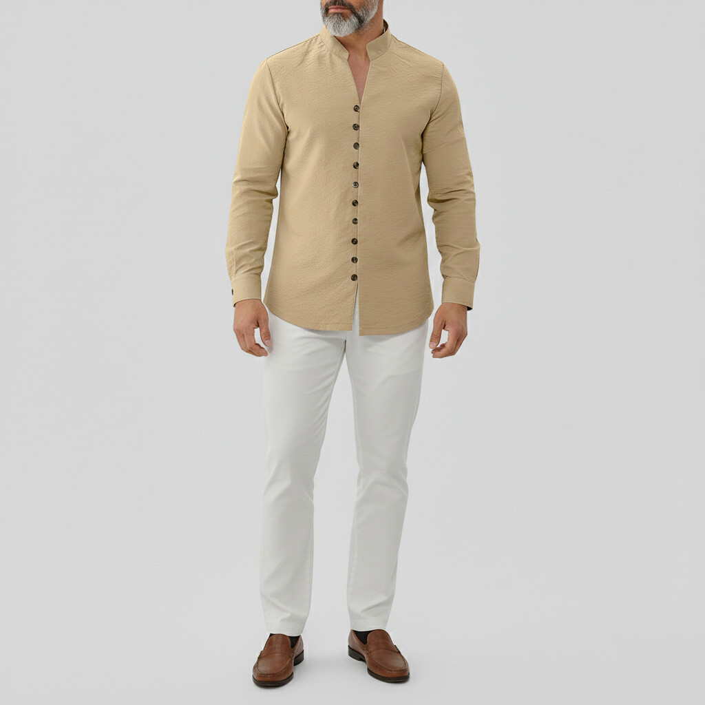 Men's Casual Solid Stand Collar Long Sleeve Shirts