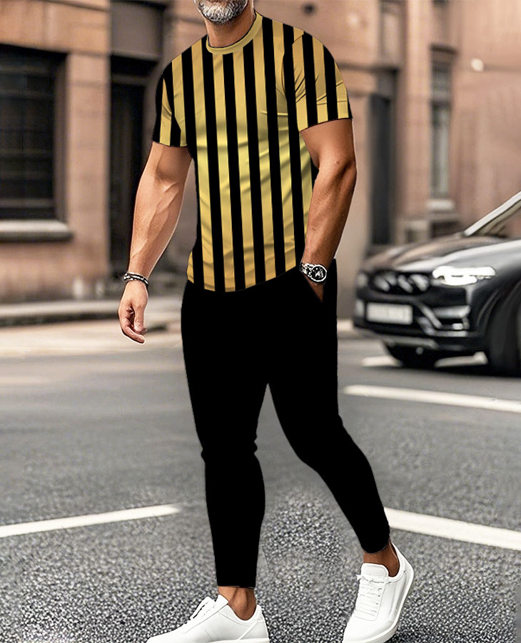 This men's casual two-piece set is the perfect combination of comfort and style, designed for the warmer seasons of spring and summer. Made from a high-quality blend of 100% cotton and polyester, the fabric ensures a soft feel while being breathable and durable for all-day wear. Featuring a bold geometric print, this set offers a unique, modern look that stands out in any casual or sporty setting. The round-neck design and short sleeves provide a relaxed and comfortable fit, ideal for various occasions like casual outings, sports, or weekend get-togethers.