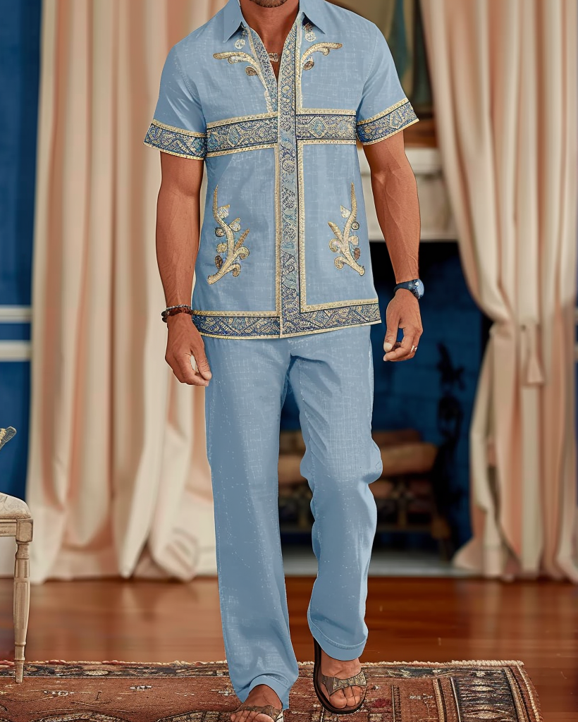 Men's Gorgeous Ethnic Floral Pattern Walking Suit 012