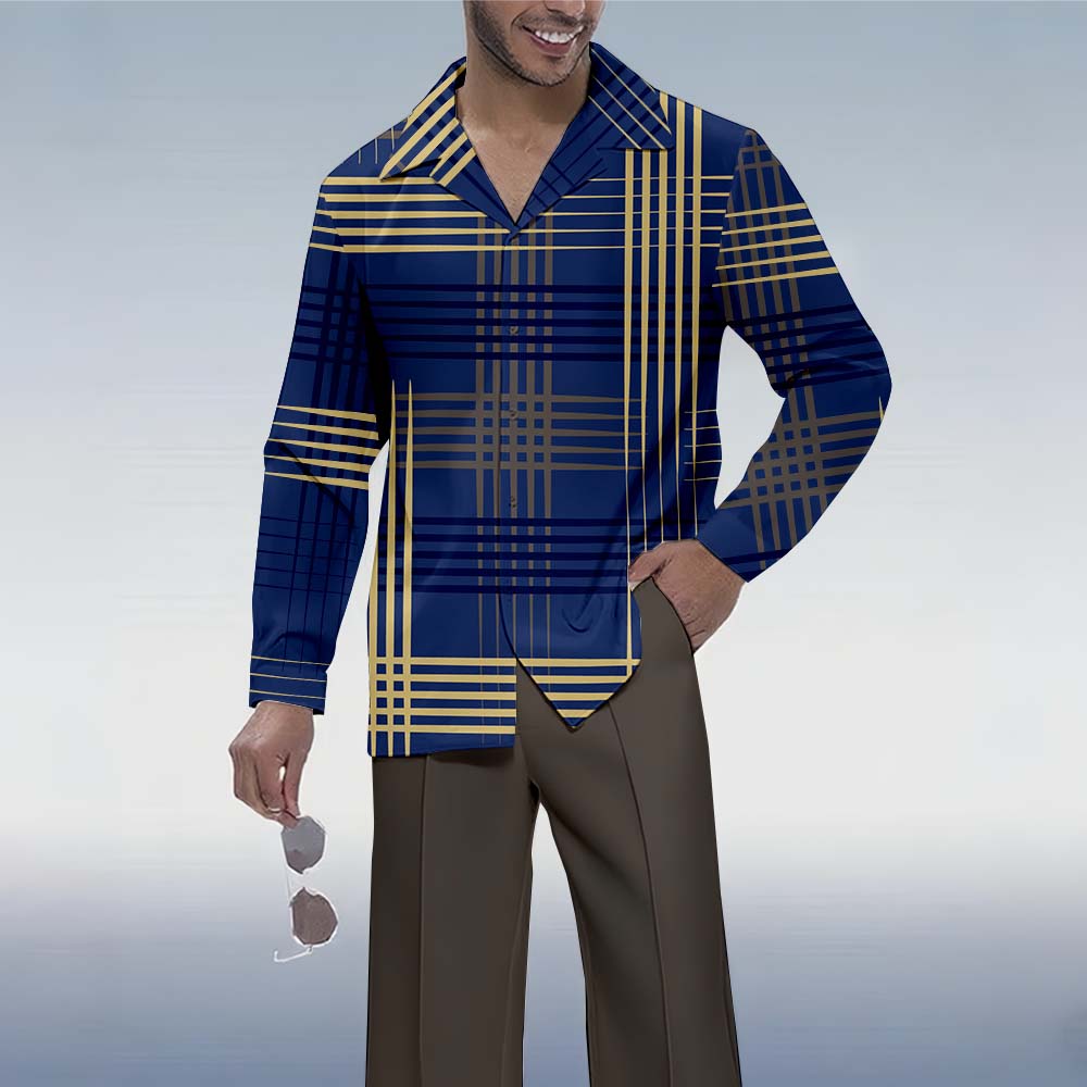 Men's Hawaiian Resort Print Lapel Long Sleeve Two-Piece Set