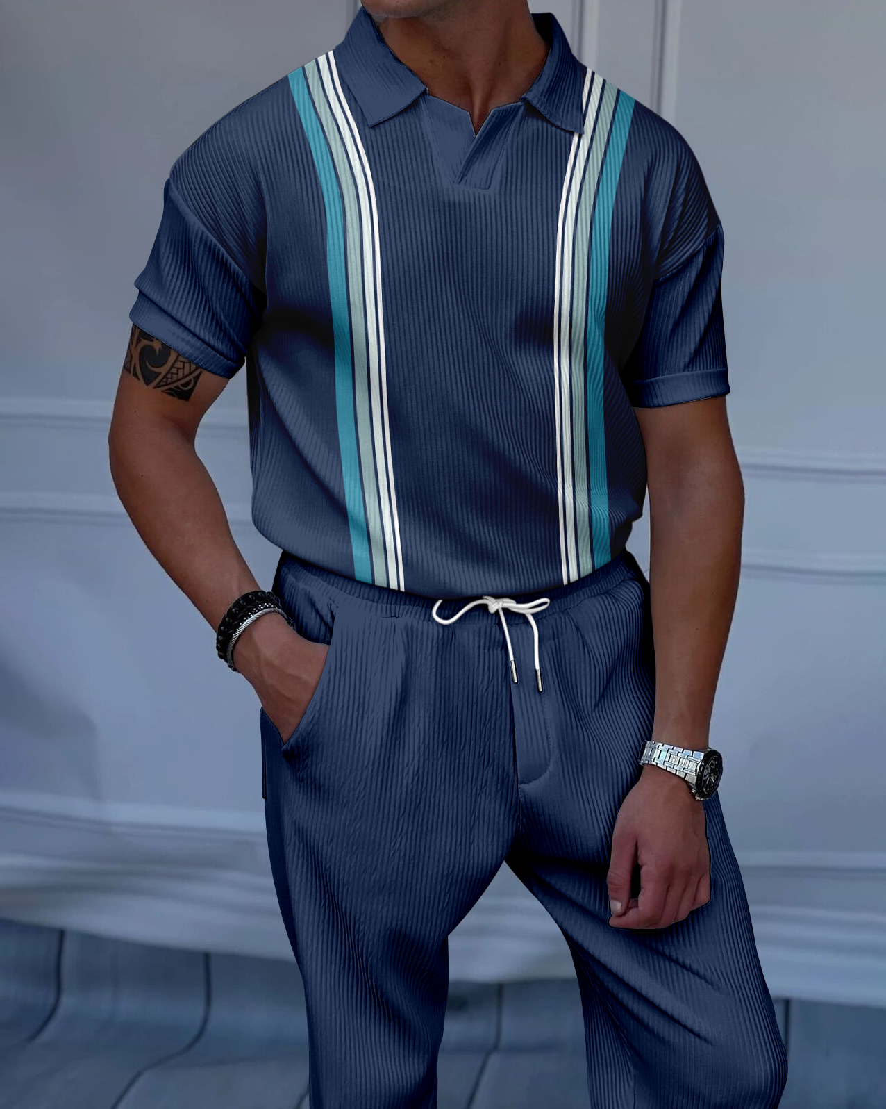 Men's Luxury Casual Textured Polo Short Sleeve Suit - 022