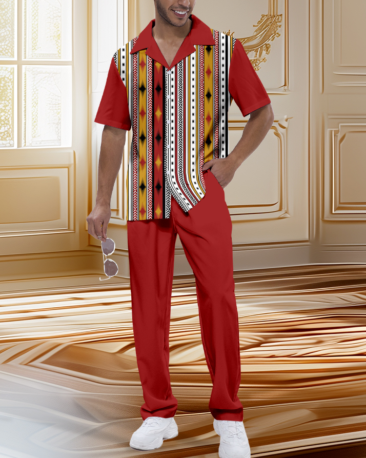 Men's Retro Luxury Short Sleeve Shirt Walking Suit 122