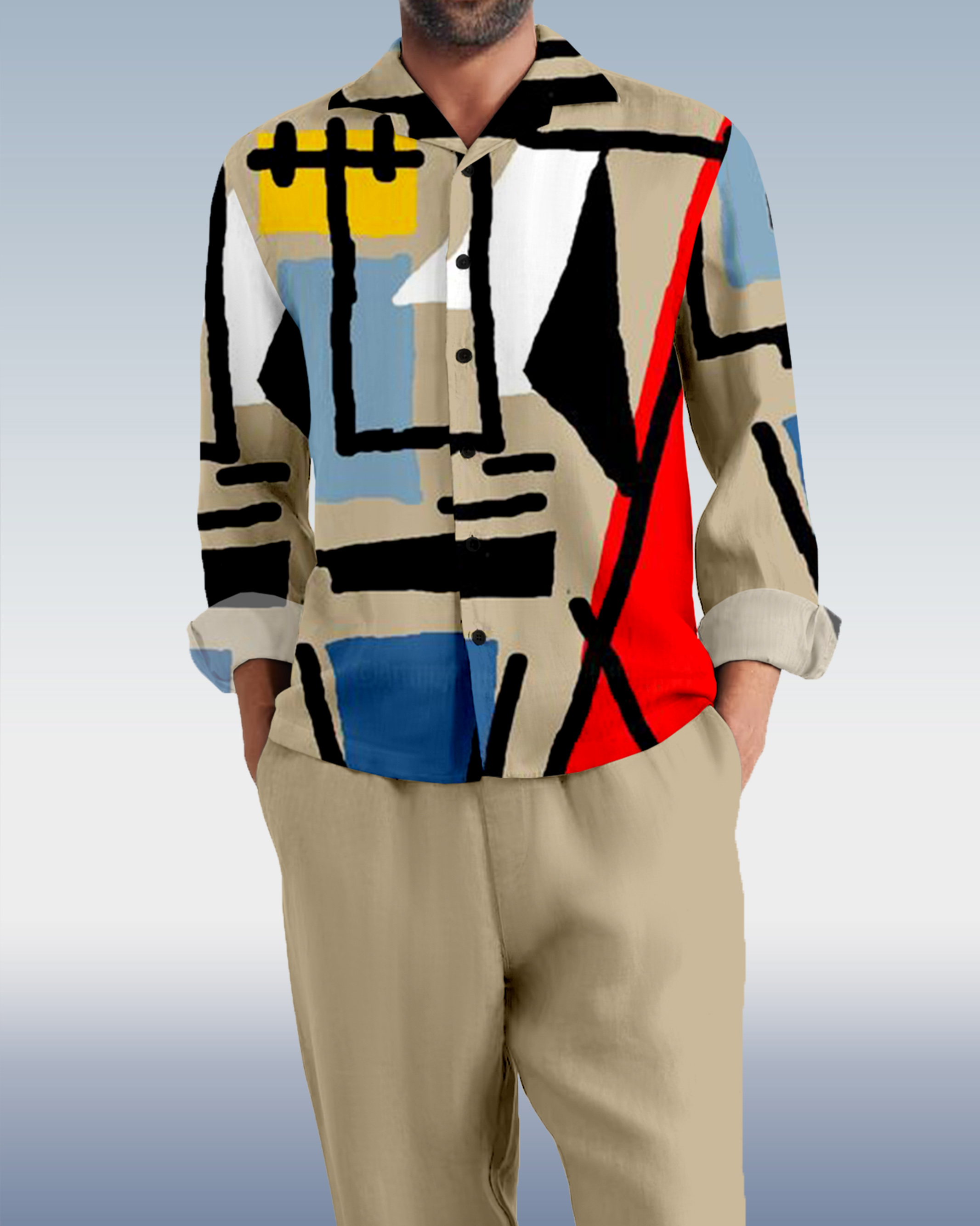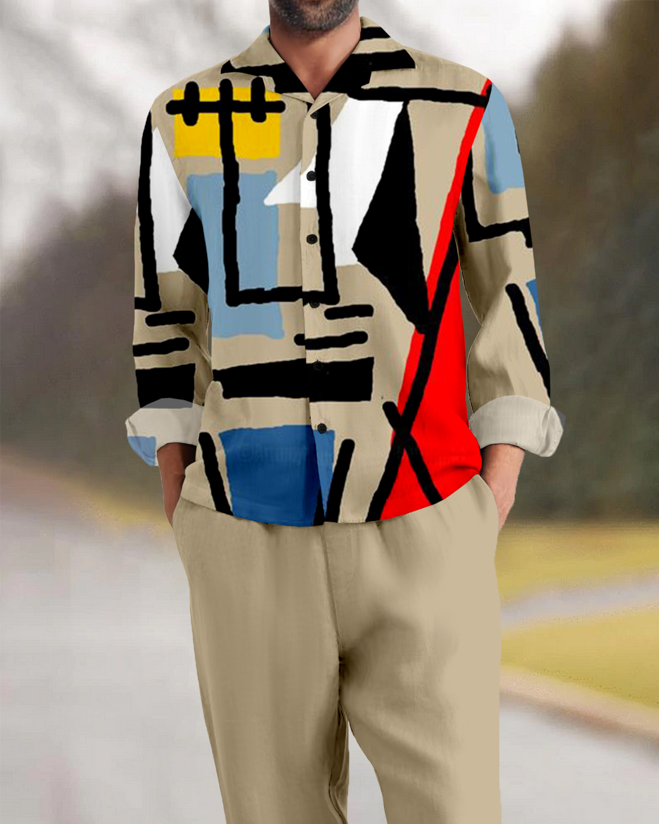 Suitmens Men's Abstract Art Long Sleeve Walking Suits-0050