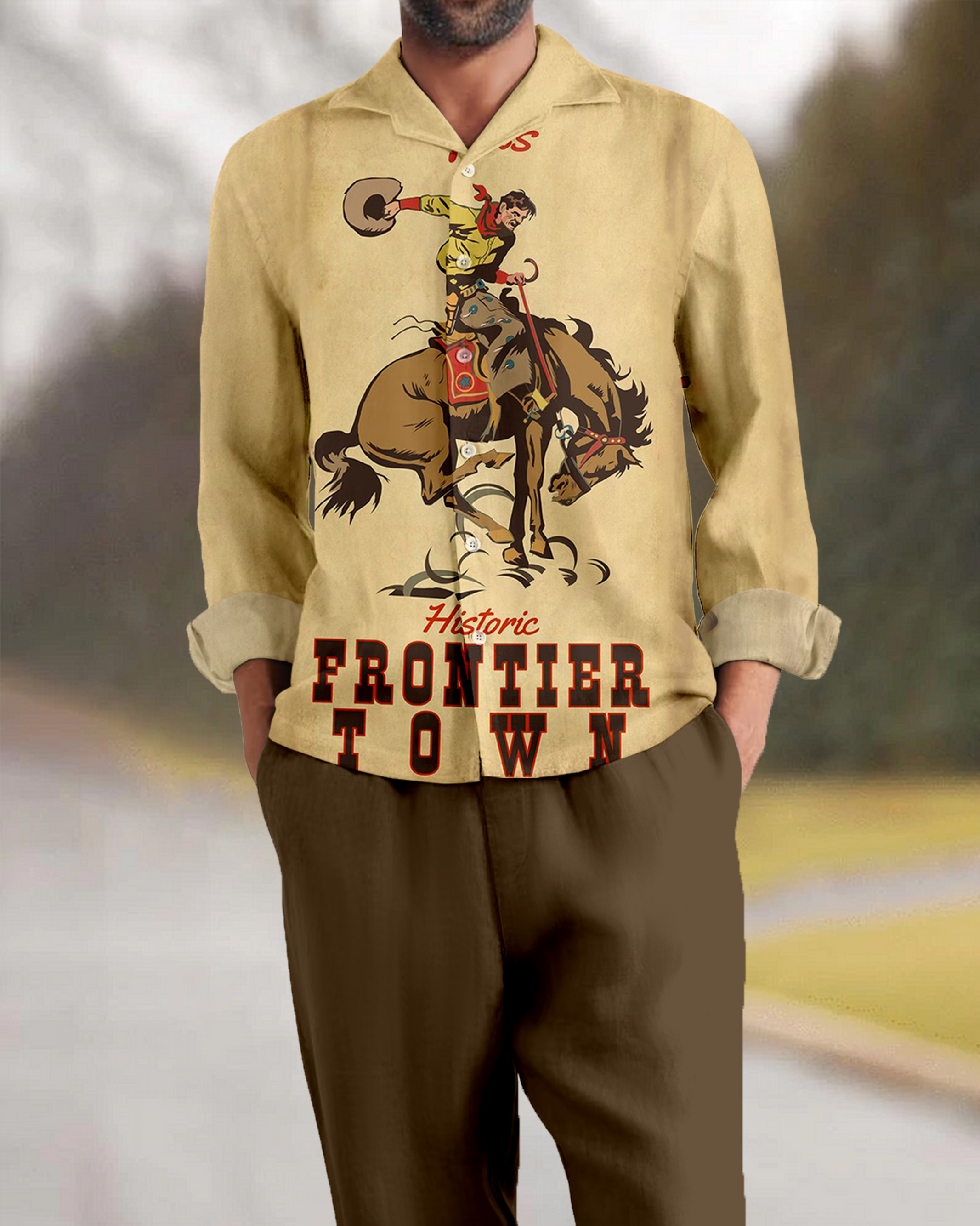 Suitmens Men's Nostalgic Equestrian Pattern Long Sleeve Suit-0007
