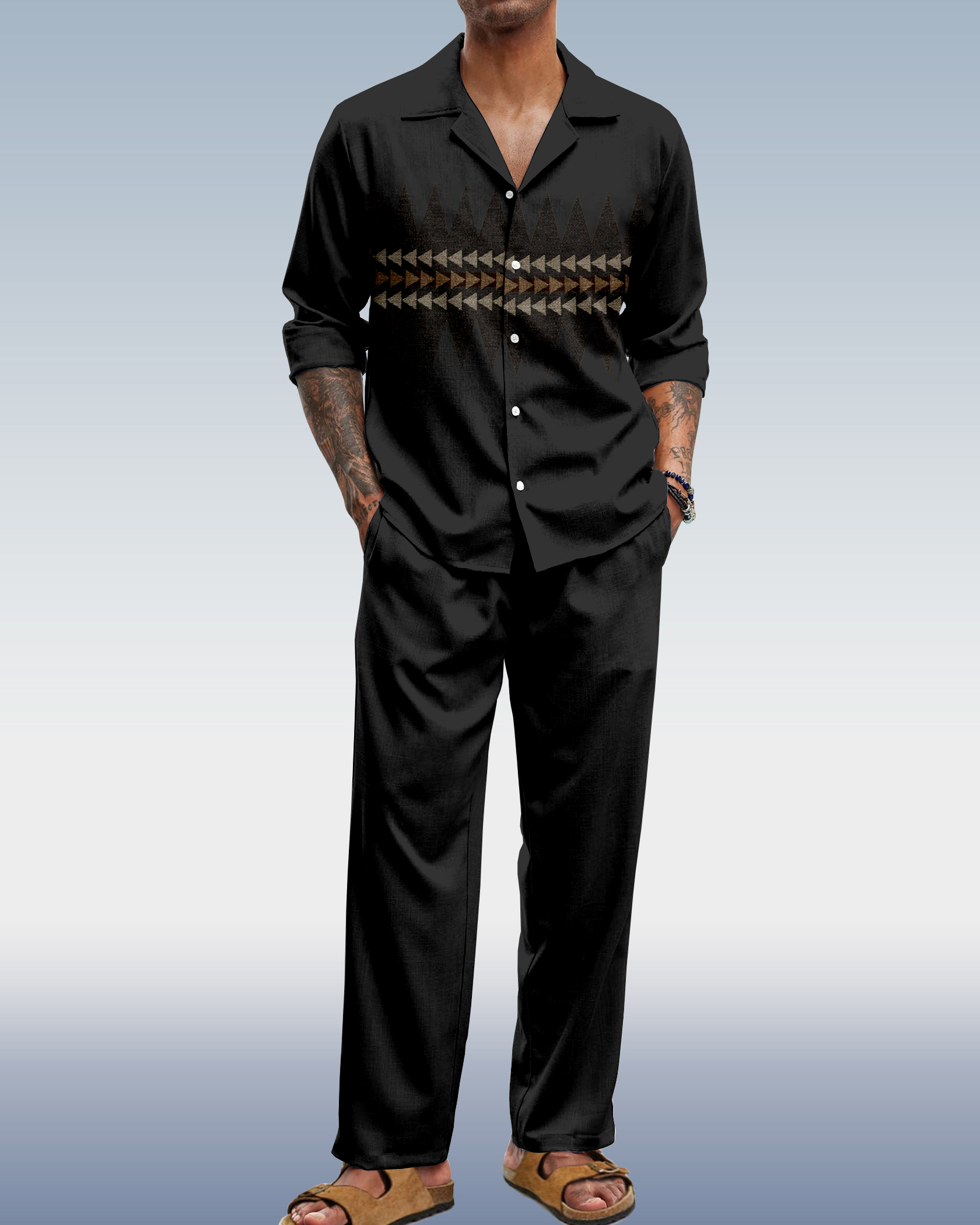 • Shirt Details: Long sleeve, button closure.