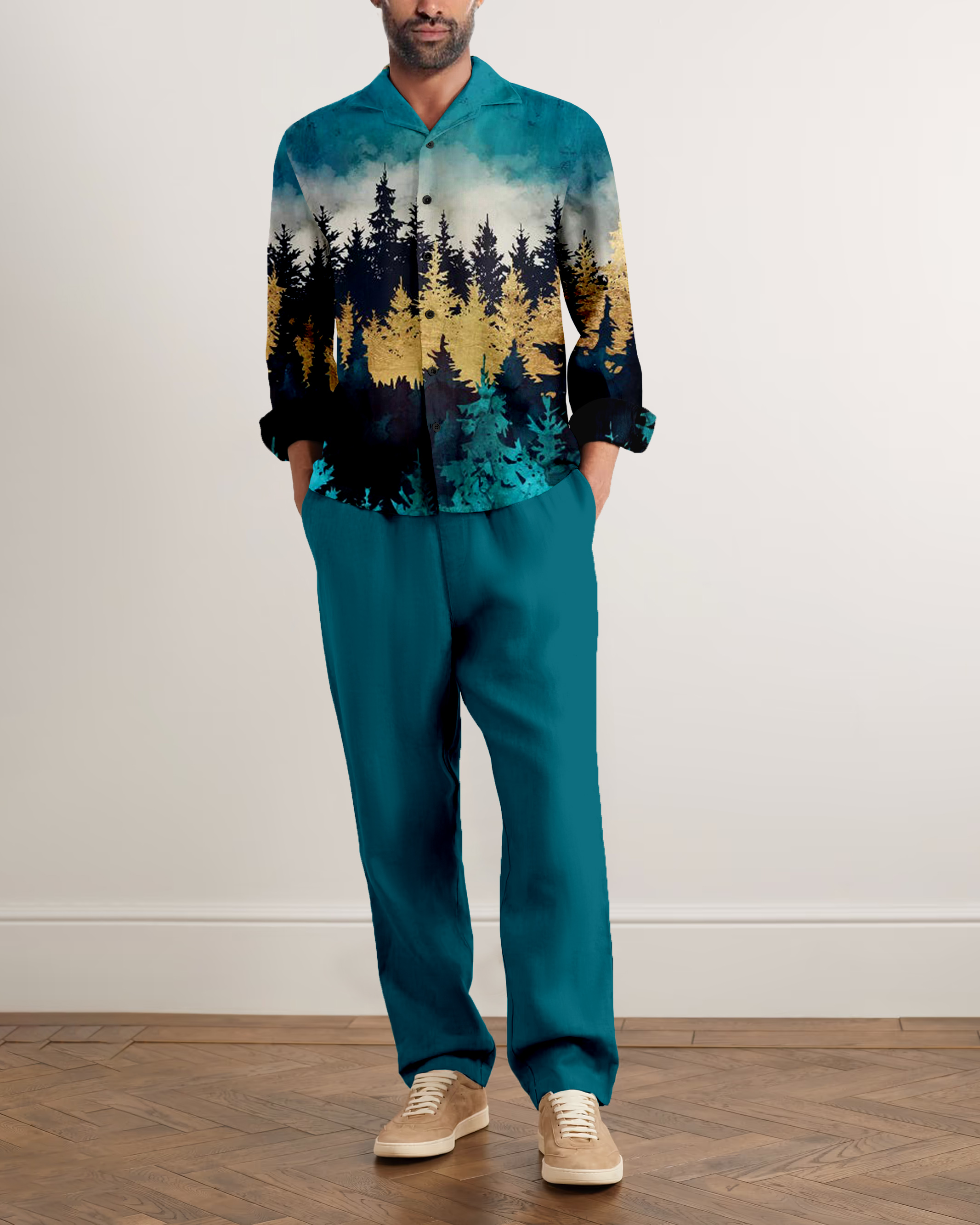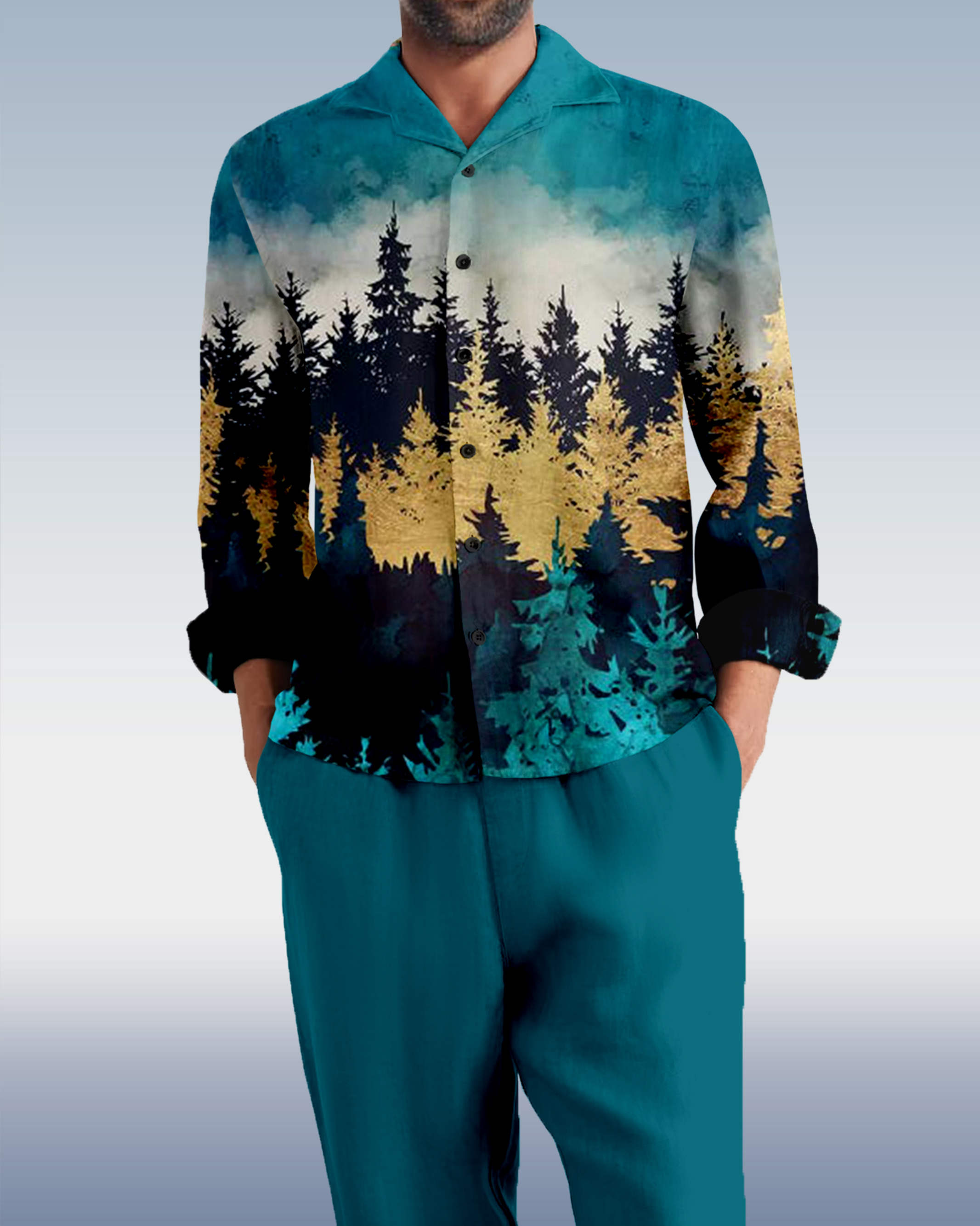 Suitmens Men's Retro Forest Mountain Long Sleeve Walking Suits-0122