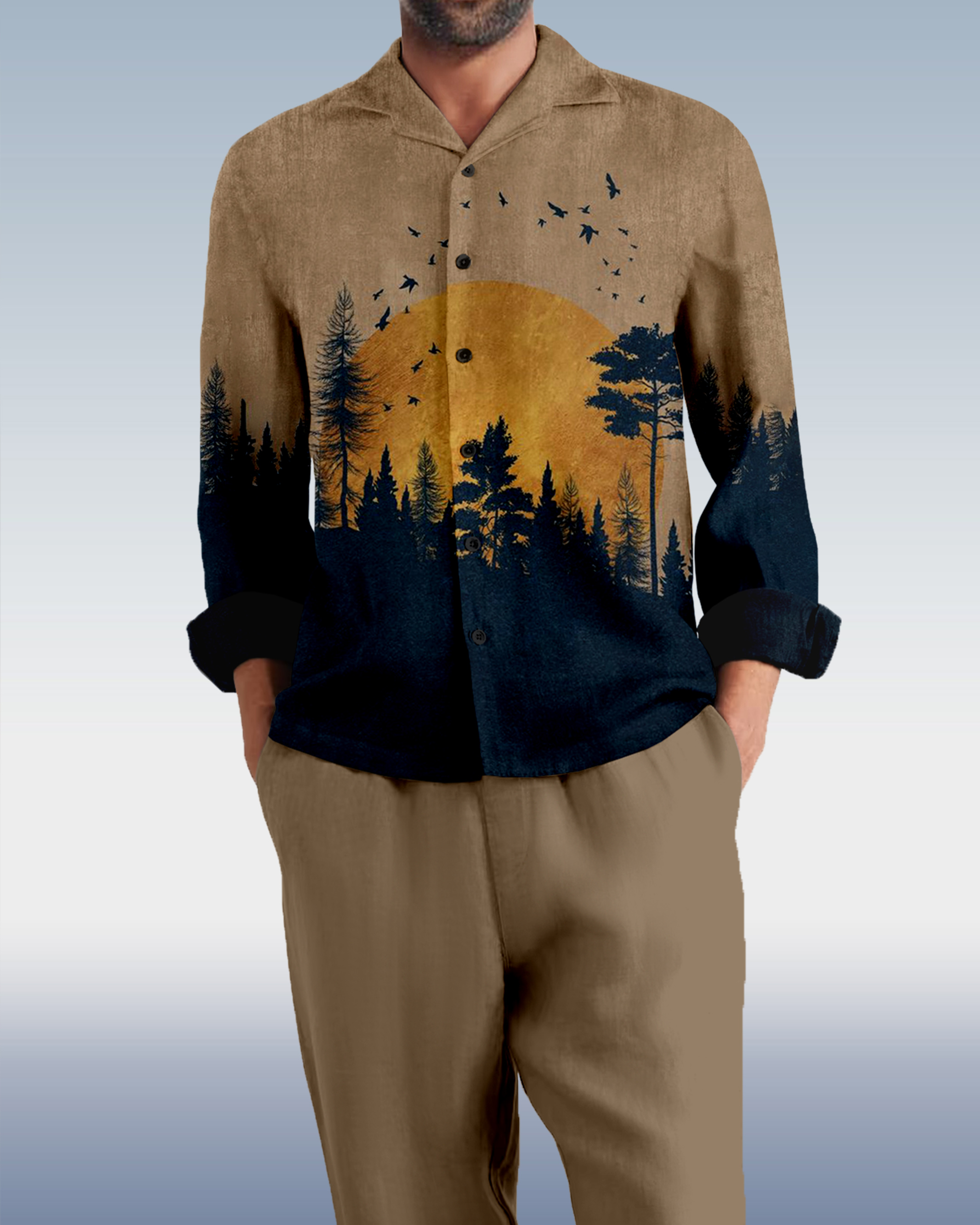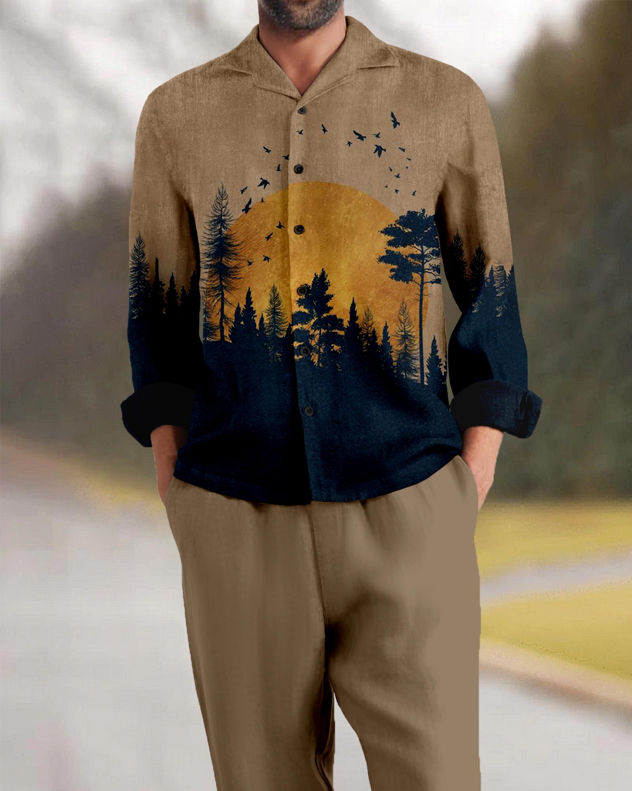 Suitmens Men's Retro Forest Mountain Long Sleeve Walking Suits-0124