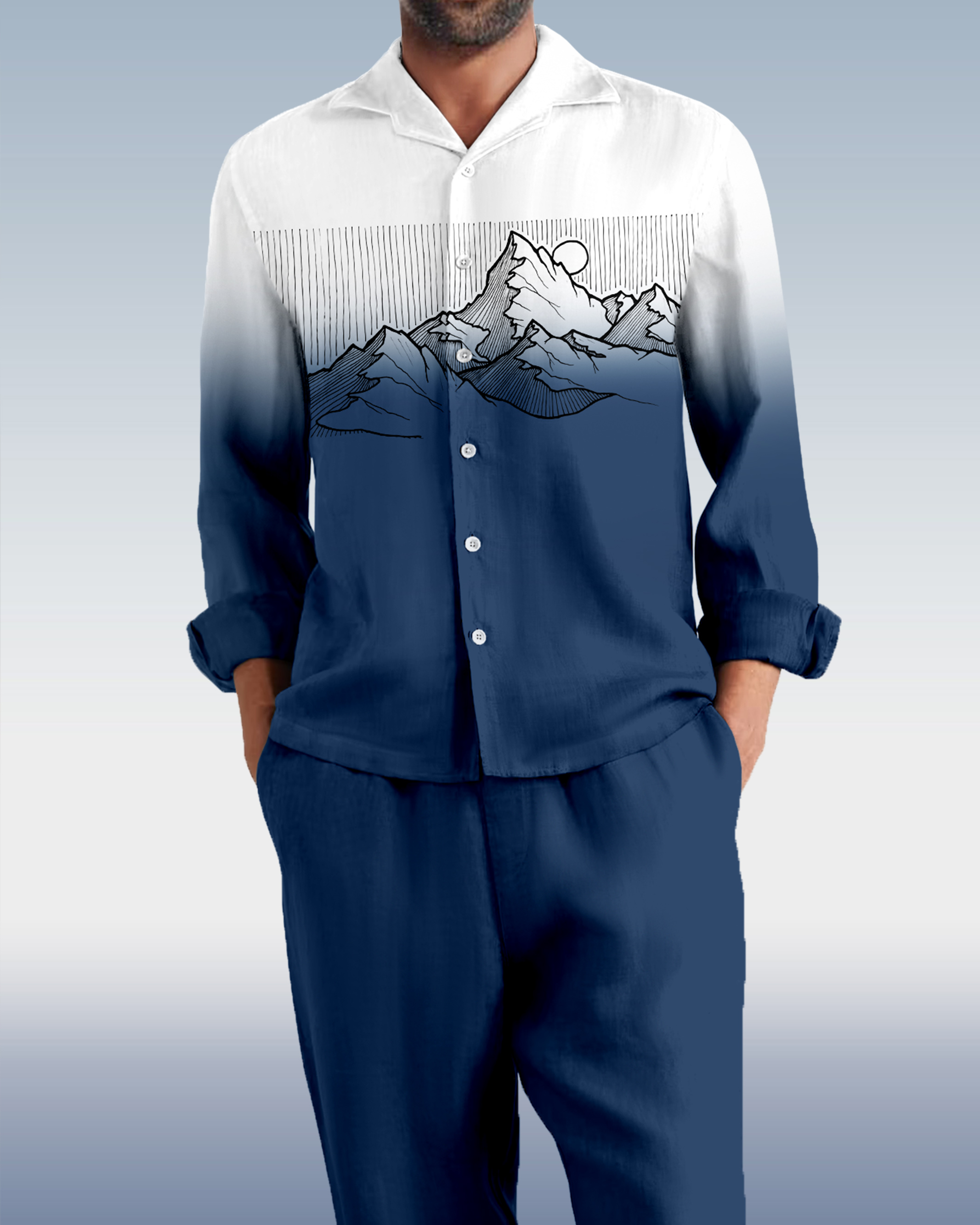 Suitmens Men's Retro Gradient Line Mountain Long Sleeve Walking Suits-0128