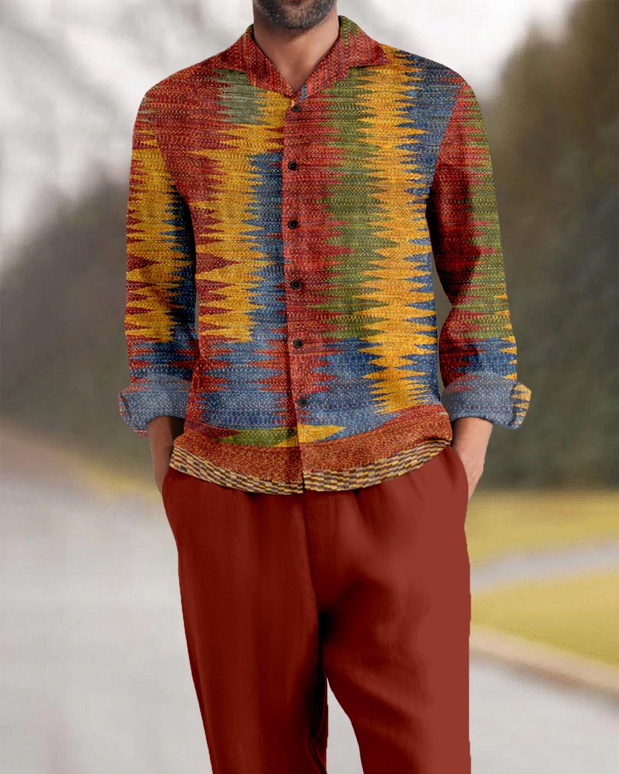 Suitmens Men's Retro Texture Long Sleeve Walking Suits-0130