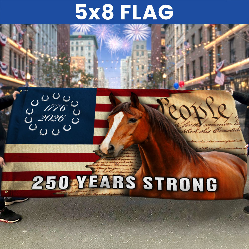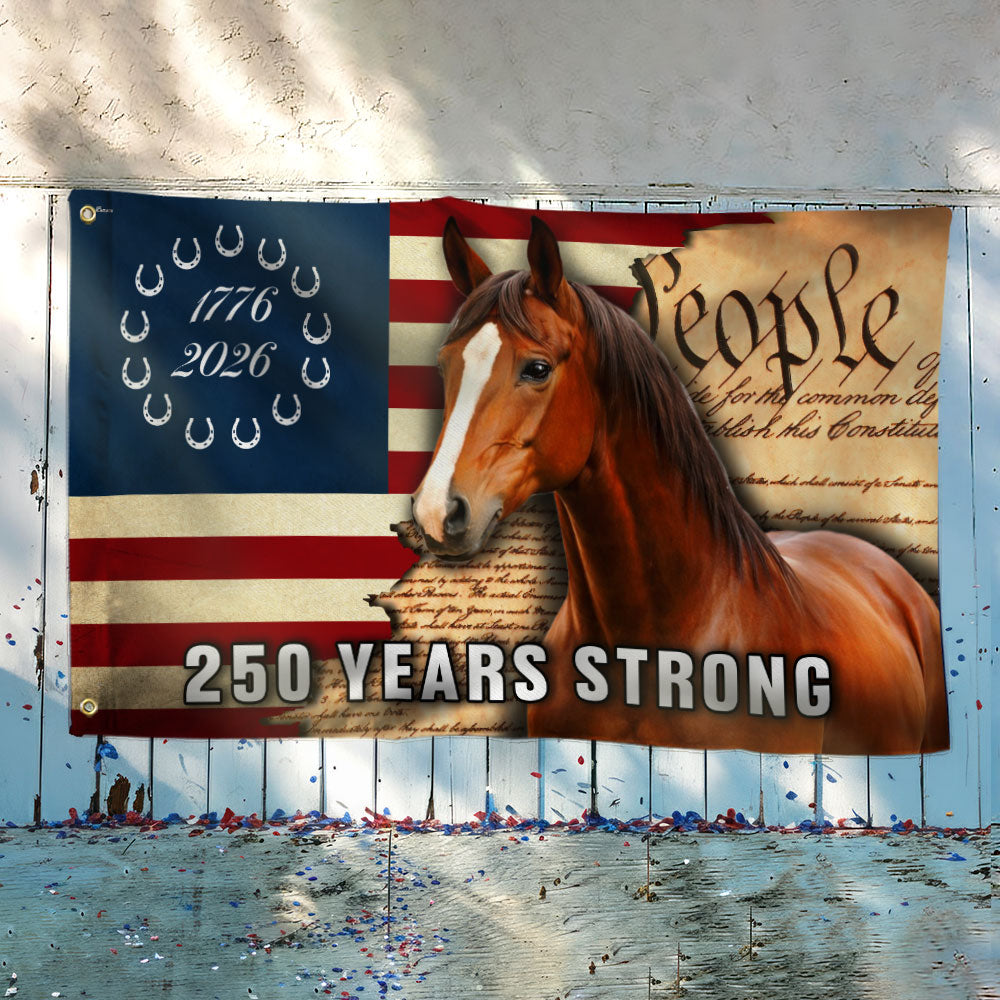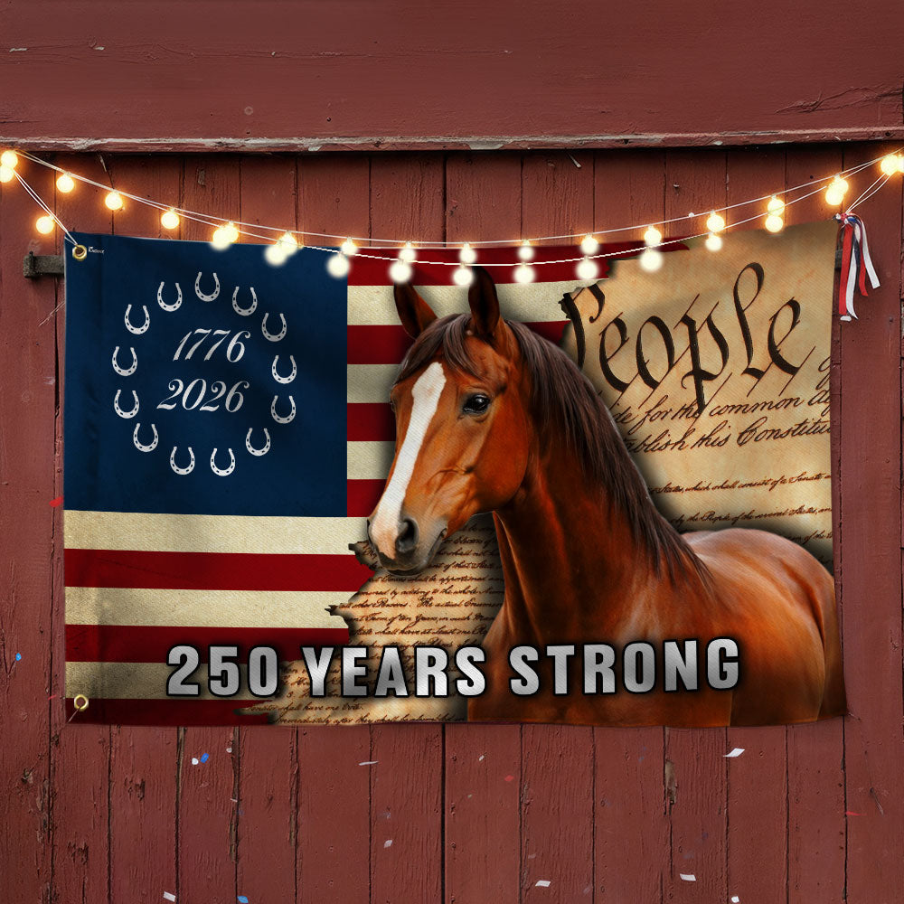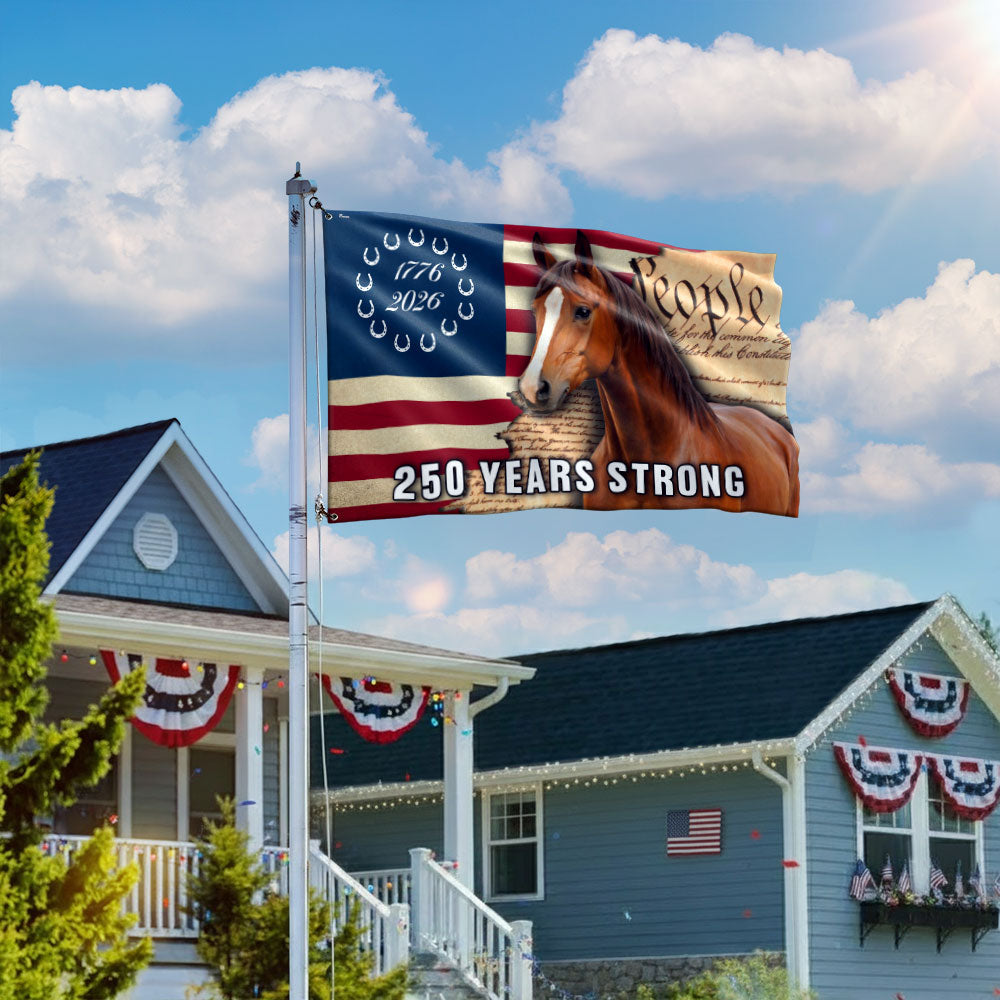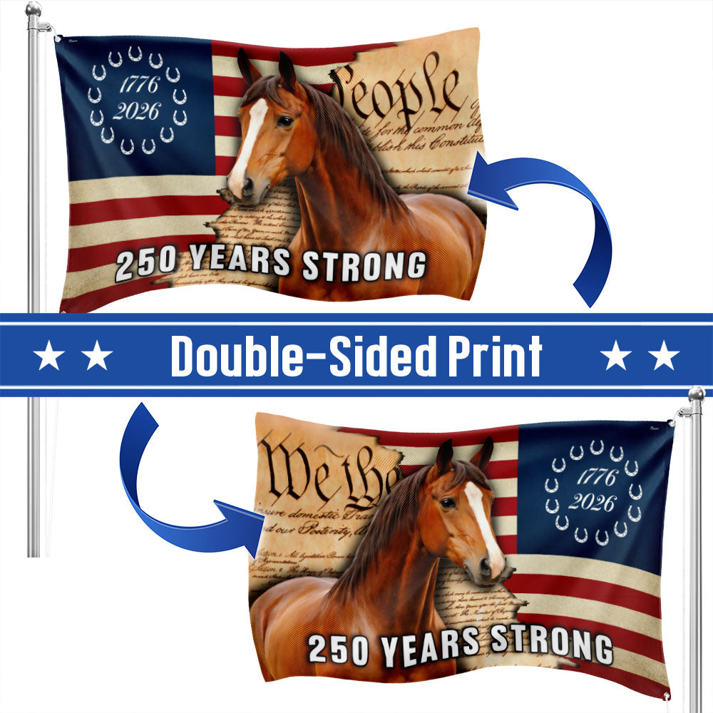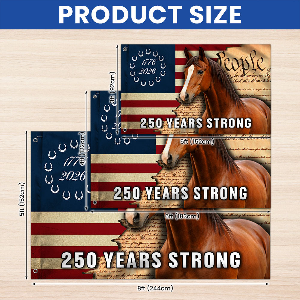 250 Years Strong American Horse Flag, Patriotic Horse Ranch 1776 2026 Flag