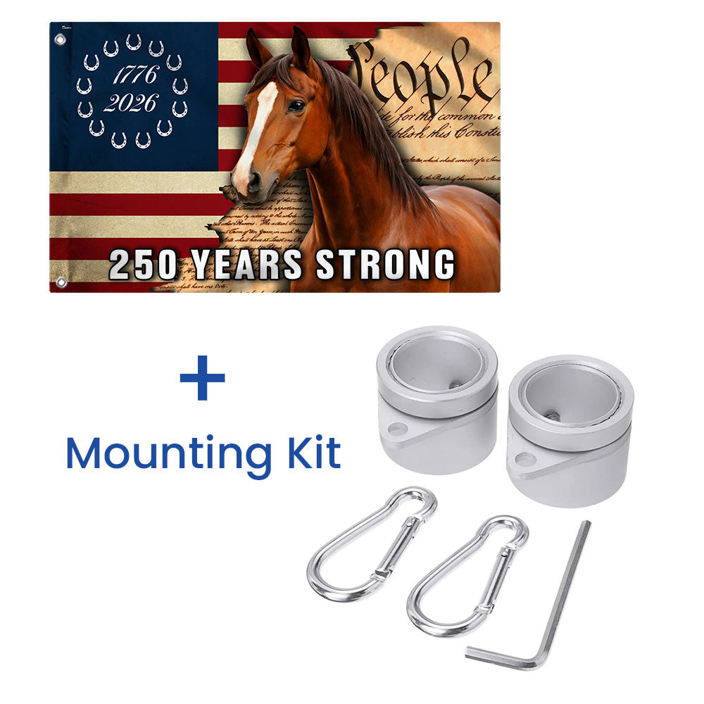 250 Years Strong American Horse Flag, Patriotic Horse Ranch 1776 2026 Grommet Flag